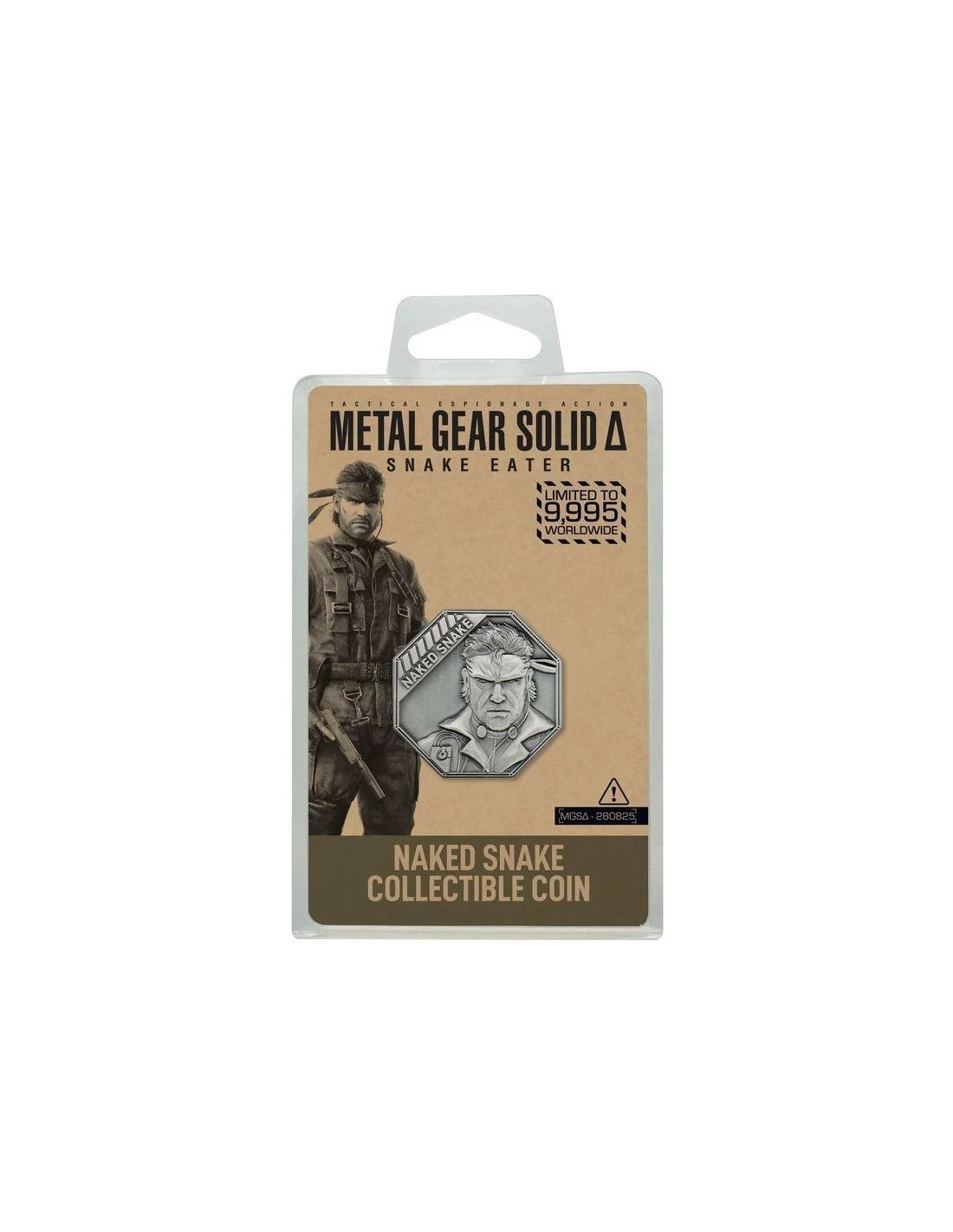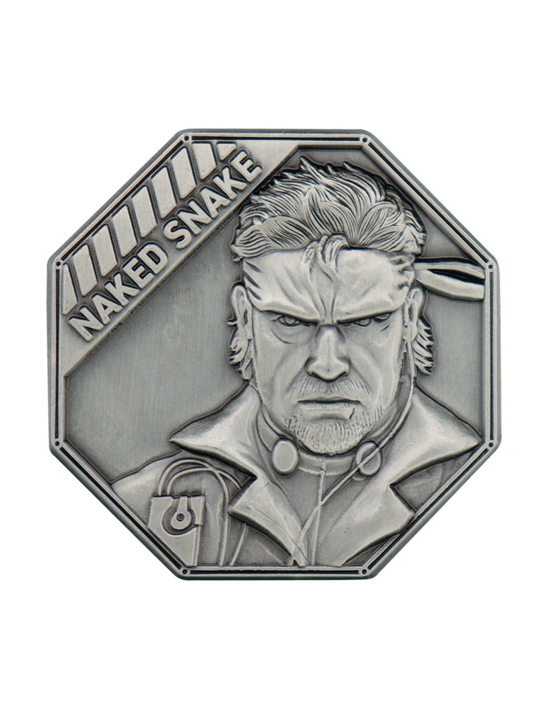 Ambientado en 1964, antes de los eventos de los juegos anteriores, Metal Gear Solid Delta: Snake Eater sigue al agente de FOX Naked Snake (quien se convertiría en Big Boss) en su intento de evitar la Tercera Guerra Mundial. Esta moneda octogonal de edición limitada representa al joven agente en color y está numerada individualmente en el reverso. Con 38 mm de grosor y presentada en una caja de acrílico, la moneda está limitada a 9995 unidades en todo el mundo.