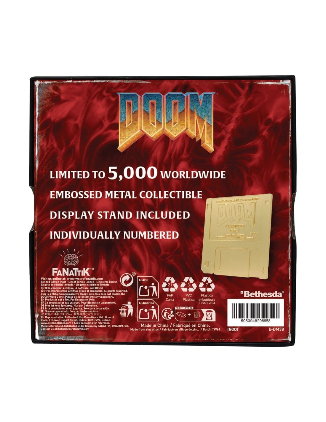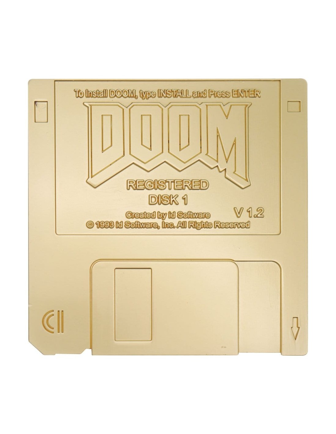 ¿Qué hay más retro que la tecnología obsoleta? Celebrando el humilde disquete de 3½ pulgadas y 1,2 MB en el que se lanzó el juego originalmente en 1993, esta réplica de disquete de DOOM de imitación chapada en oro de edición limitada viene en una caja que muestra la ilustración original del juego, incluye un soporte de exhibición y está numerada individualmente como una de las 5000 unidades en todo el mundo.