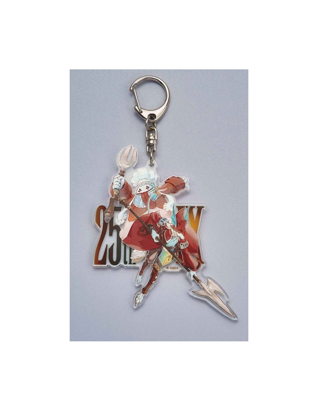 Presentamos un llavero de acrílico con una ilustración inédita de Quina y Freija creada por Toshiyuki Itahana con motivo del 25.º aniversario de FINAL FANTASY IX. Puedes usarlo con tus llaves o engancharlo a una mochila, por ejemplo, y es el complemento ideal para cualquier fan.