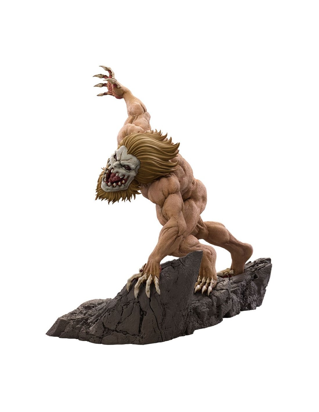 Esta figura de 23 cm inmortaliza la agilidad y ferocidad del Titán Mandíbula. El diseño se centra en su característica boca blindada y en la pose dinámica que sugiere una velocidad de movimiento increíble. Es una pieza esencial que contrasta perfectamente con los Titanes más grandes y lentos.