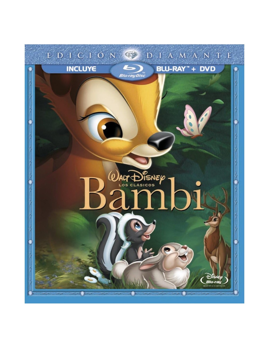 La historia de las aventuras del pequeño cervatillo estaba destinada a ser el segundo largometraje de animación de Disney ya que comenzó su producción en 1936, sin embargo, la búsqueda de perfección de Walt Disney retrasó el proyecto de manera significativa y la película no vio la luz hasta 1942 convirtiéndose en el sexto clásico de Disney. En esta película de animación, el príncipe del bosque, un cervatillo llamado Bambi, nace en un frondoso bosque y comienza a dar sus primeros pasos junto con sus amigos Tambor y Flor. Juntos patinan sobre un lago helado, aprenden lo que es el amor y descubren los secretos de la naturaleza. Bambi, siempre guiado por su amigo el Señor Búho aprenderá el valor de la amistad, lo duro que resulta perder a los seres queridos, y comenzará a apreciar la importancia de la familia.
