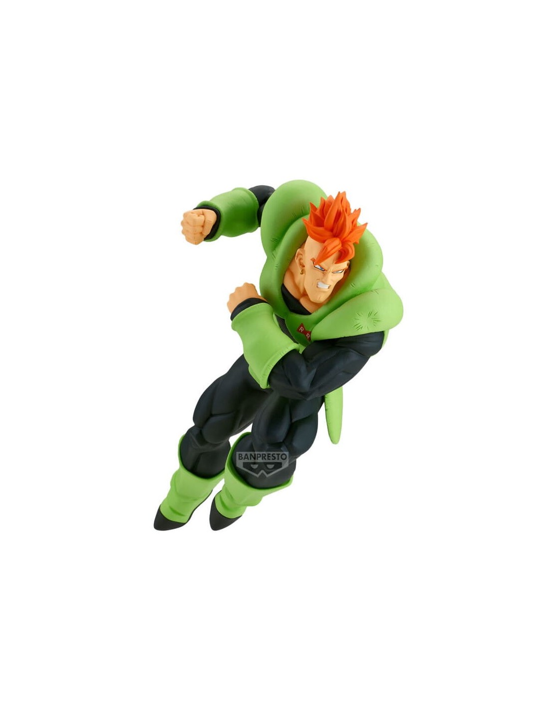 El gigante bondadoso que amaba la vida. Esta figura de 17 cm del Androide 16 forma parte de la serie Match Makers, diseñada para recrear el combate contra Cell. Captura al androide en una pose dinámica de agarre, con un esculpido detallado de su armadura verde y su característico peinado naranja. Una pieza con un gran valor sentimental para cualquier fan de la saga de los androides.