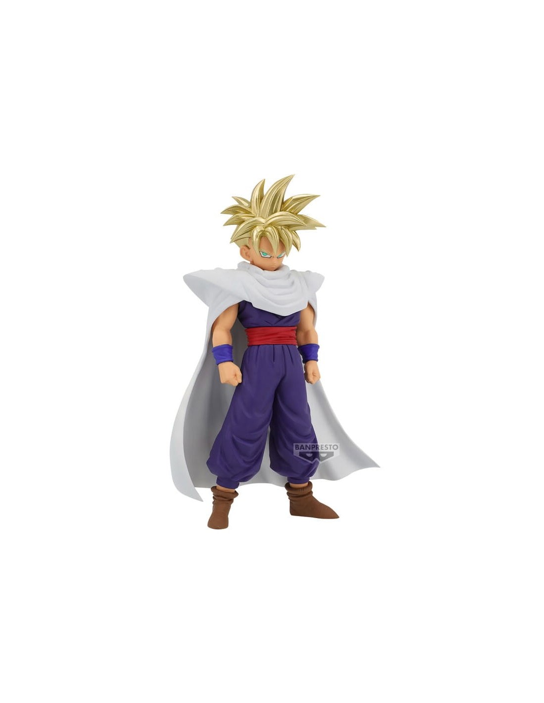 ¡El despertar de la rabia saiyajin! Gohan en Super Saiyan 2 llega a la línea Blood of Saiyans con una altura de 16 cm. Esta serie es famosa por su acabado metalizado y brillante en el cabello, simulando el aura de energía dorada. La pose captura el momento exacto de su transformación ante Cell, con un esculpido de ropa rasgada y una expresión de ira contenida que la convierte en una pieza llena de épica.