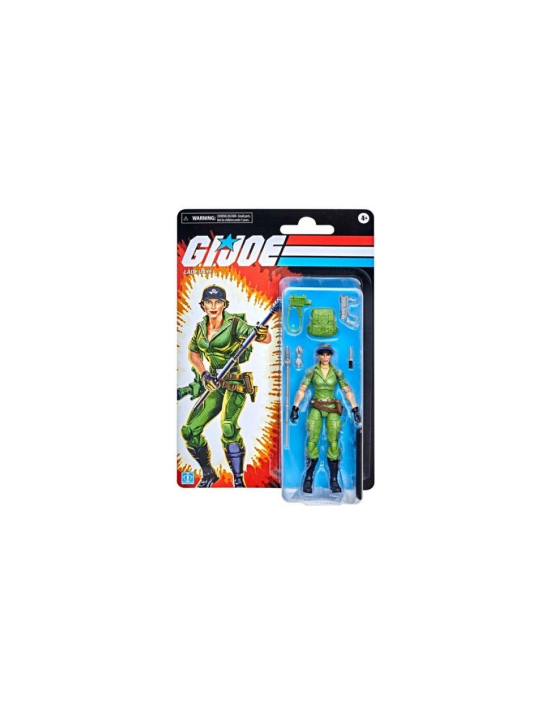 Hasbro dentro de su línea de G.I. Joe retro collection nos presenta la figura de Lady Jane que viene lista para la acción,con múltiples puntos de articulación que otorga a la figura distintas poses. La figura viene además con 6 accesorios inspirados en el personaje y su altura aproximada es de 15cm.