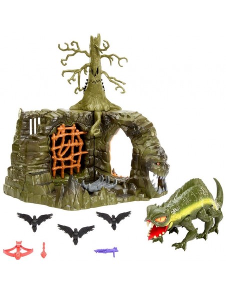 Entra si te atreves. Actualizado de forma aterradora con trampas aterradoras en cada esquina, este set lleva a los coleccionistas a las profundidades de la fortaleza de Hordak, la Zona del Terror. Gira el árbol distintivo de la guarida para revelar el trono del villano de Hordak. Descubre una entrada secreta y un escondite para guardar tus armas. Perfecto para jugar y exhibir, este set ultraterrorífico te permite adentrarte en la mente del líder de la Horda, capturando héroes con tu arsenal de trampas, con el Dragón Terrible a tu lado.