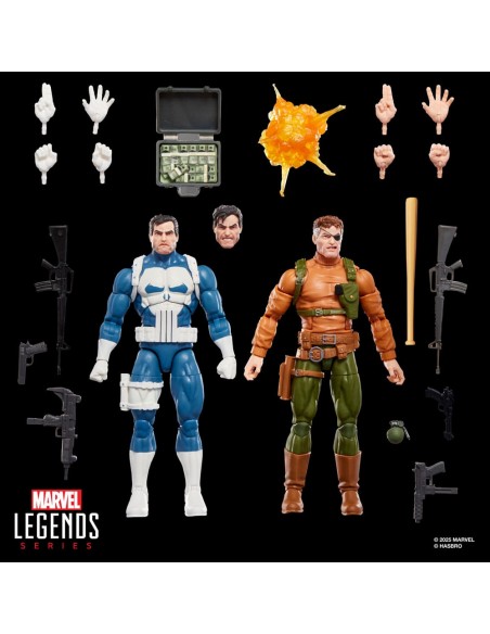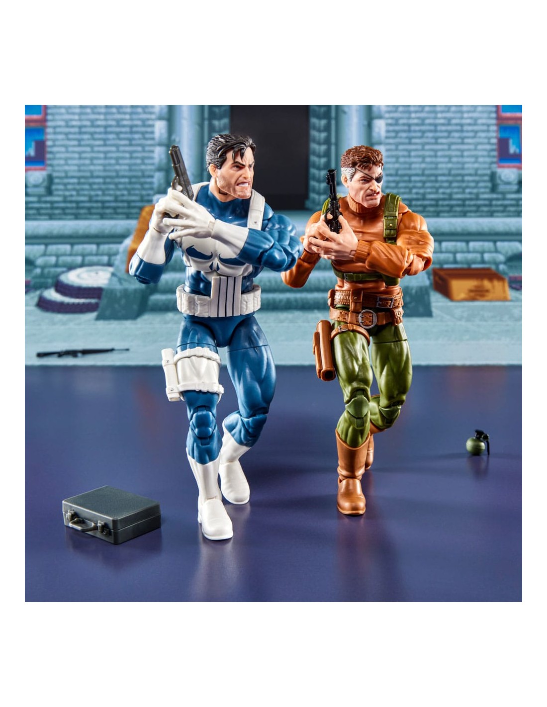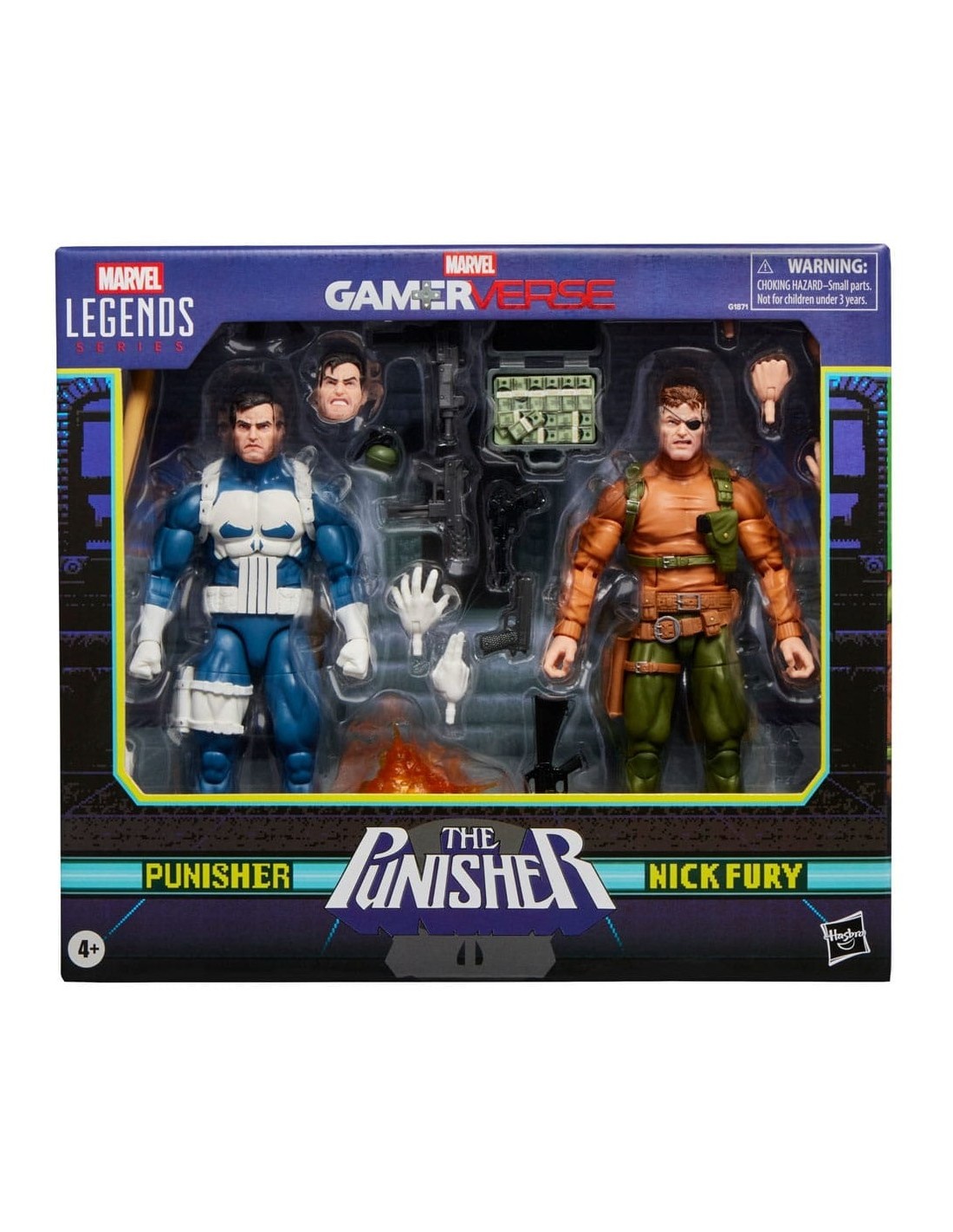 ¡Trae la emoción y la maravilla del Universo Marvel a tu colección con las figuras de acción de Punisher y Nick Fury, de la línea Marvel Legends de Hasbro! Estas figuras Marvel a escala de 15 cm están inspiradas en la apariencia de los personajes en el videojuego The Punisher de Marvel. Estas figuras cuentan con diseño premium y cabeza, brazos y piernas completamente articulables. Este set de figuras de acción de Marvel viene con 20 accesorios, incluyendo un arma inspirada en el juego y accesorios de la historia, además de manos alternativas para cada figura. Las figuras de acción Marvel de Hasbro a escala de 15 cm son ideales para exhibirlas en las colecciones de los fans. Reimagina escenas inspiradas en los videojuegos en tus estantes con los artículos de colección de Marvel.