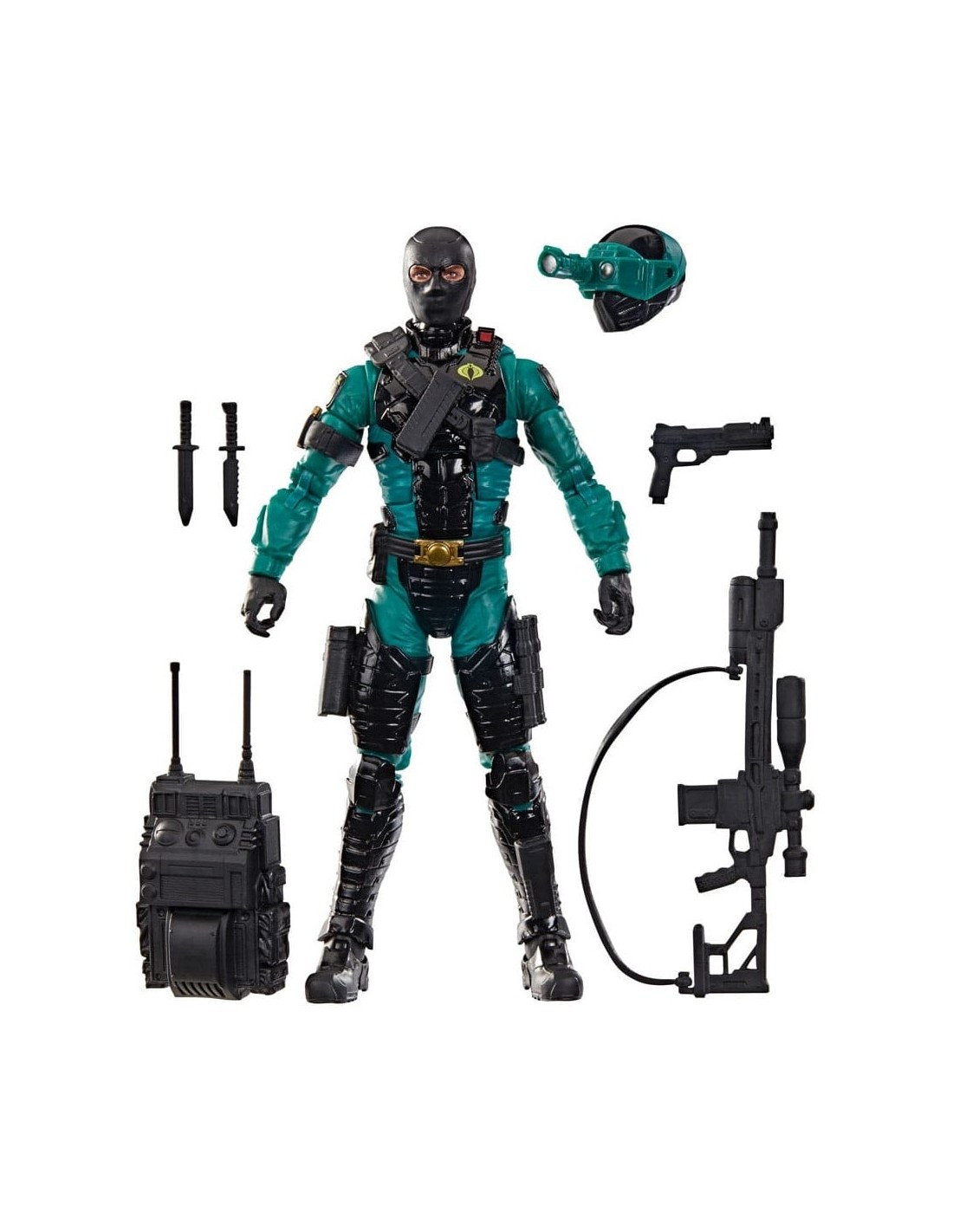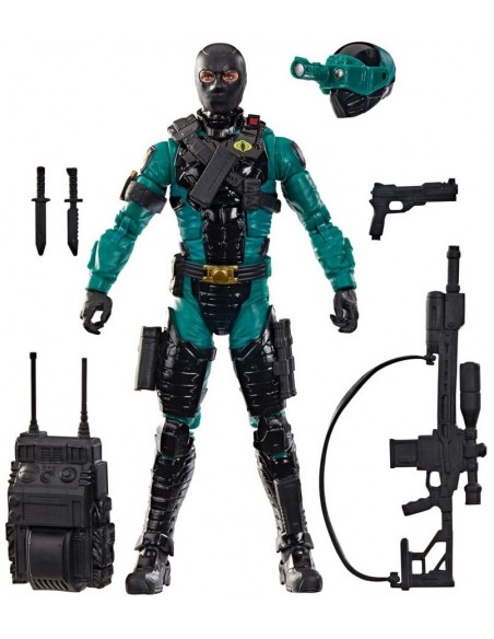 G.I. Joe es un equipo de fuerzas especiales altamente capacitado, integrado por hombres y mujeres provenientes de todas partes del planeta. Son elegidos para defender el mundo contra las amenazas de Cobra, una despiadada organización criminal que busca alcanzar el dominio global. Los valientes miembros del equipo G.I. Joe combaten contra la organización Cobra en cualquier lugar del planeta. Dondequiera que haya problemas, ahí estará G.I. Joe. Night-Viper llega a la línea de figuras G.I. Joe Classified Series y está listo para la acción con múltiples puntos de articulación para que puedas colocarlo en diferentes poses. Esta figura Night-Viper viene con 7 accesorios inspirados en el personaje, incluyendo cabeza alternativa con casco y visor de visión nocturna, mochila, 2 cuchillos y arma. El poderoso detector infrarrojo del casco de un Night-Viper puede percibir el calor corporal de una ardilla a 90 metros. Su traje de combate y armas están principalmente hechos de compuestos sintéticos que reducen su señal térmica y confunden a la mayoría de los radares de tierra. Una luz intensa directa puede abrumar sus sensores. El problema es que primero tienes que encontrarlo.