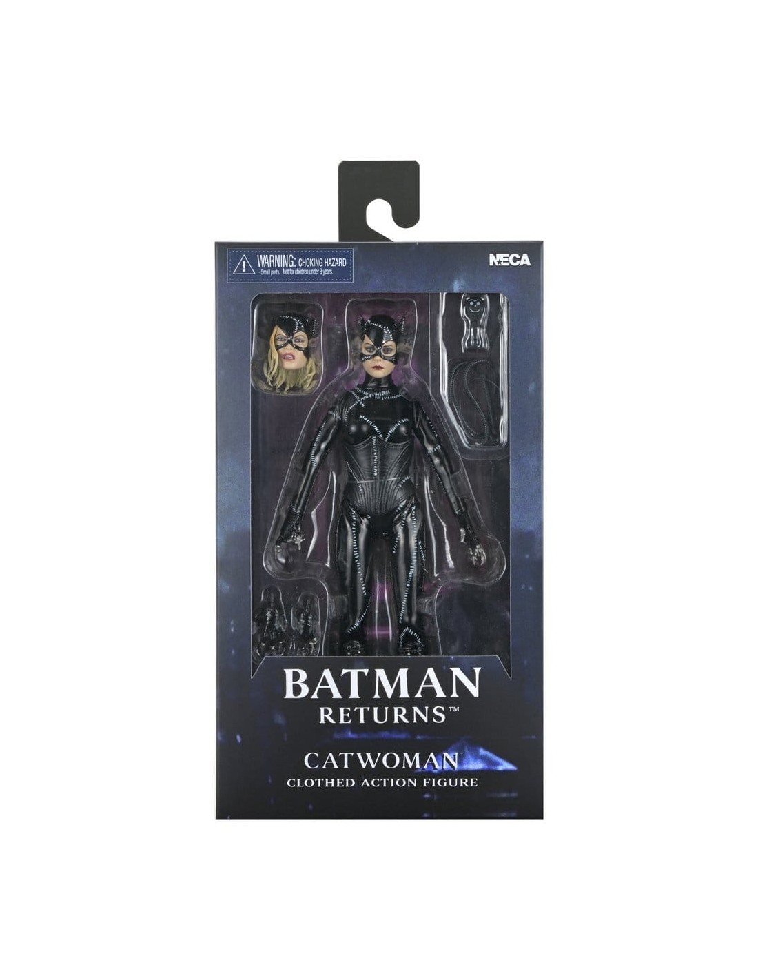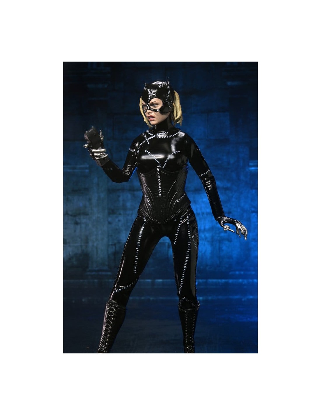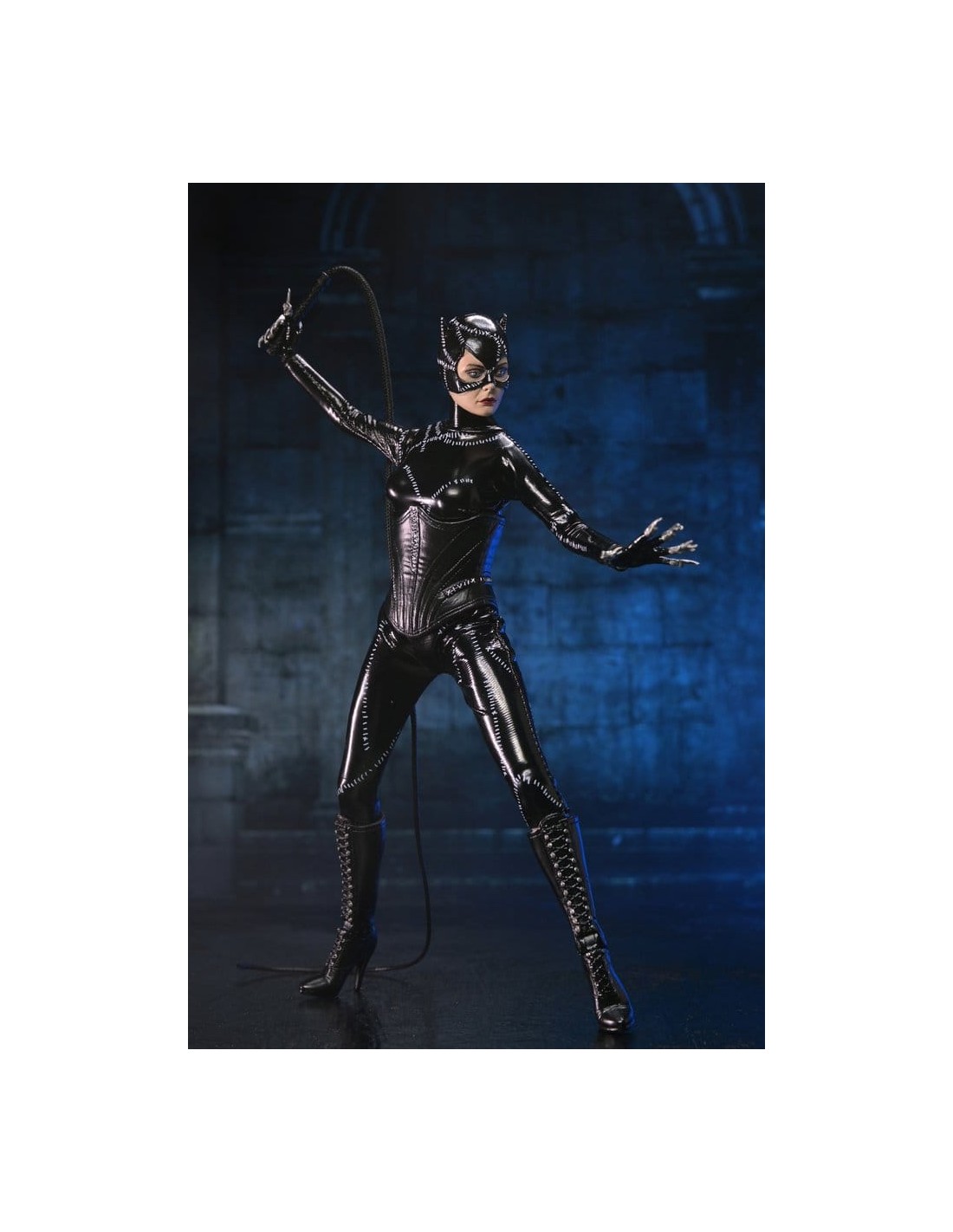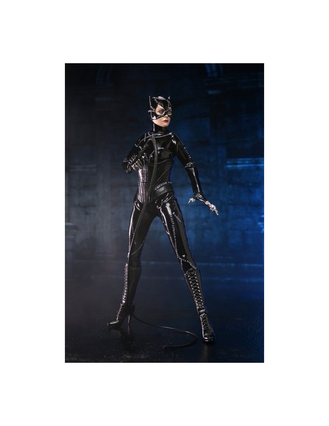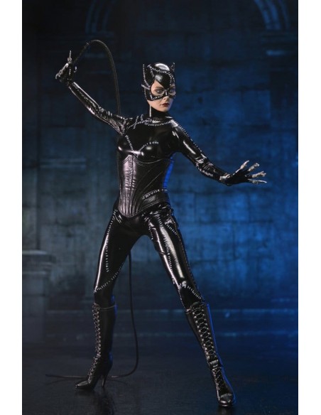 NECA presenta esta figura de acción vestida de Catwoman de Batman Returns, con la imagen autorizada de Michelle Pfeiffer, cuya inolvidable actuación en la película de Tim Burton de 1992 aún define al personaje.