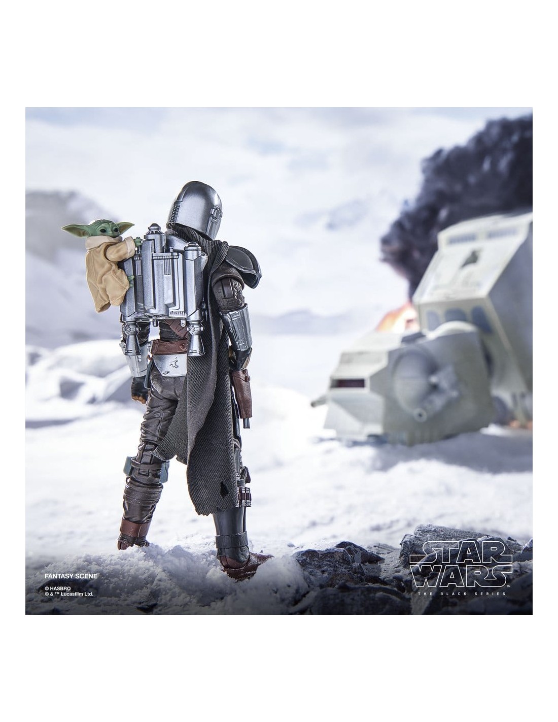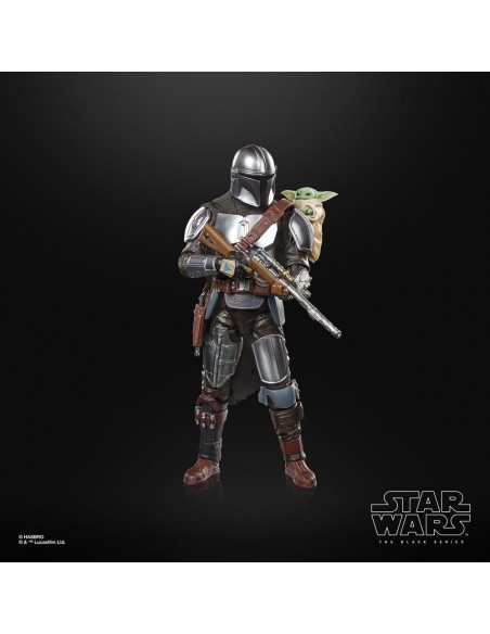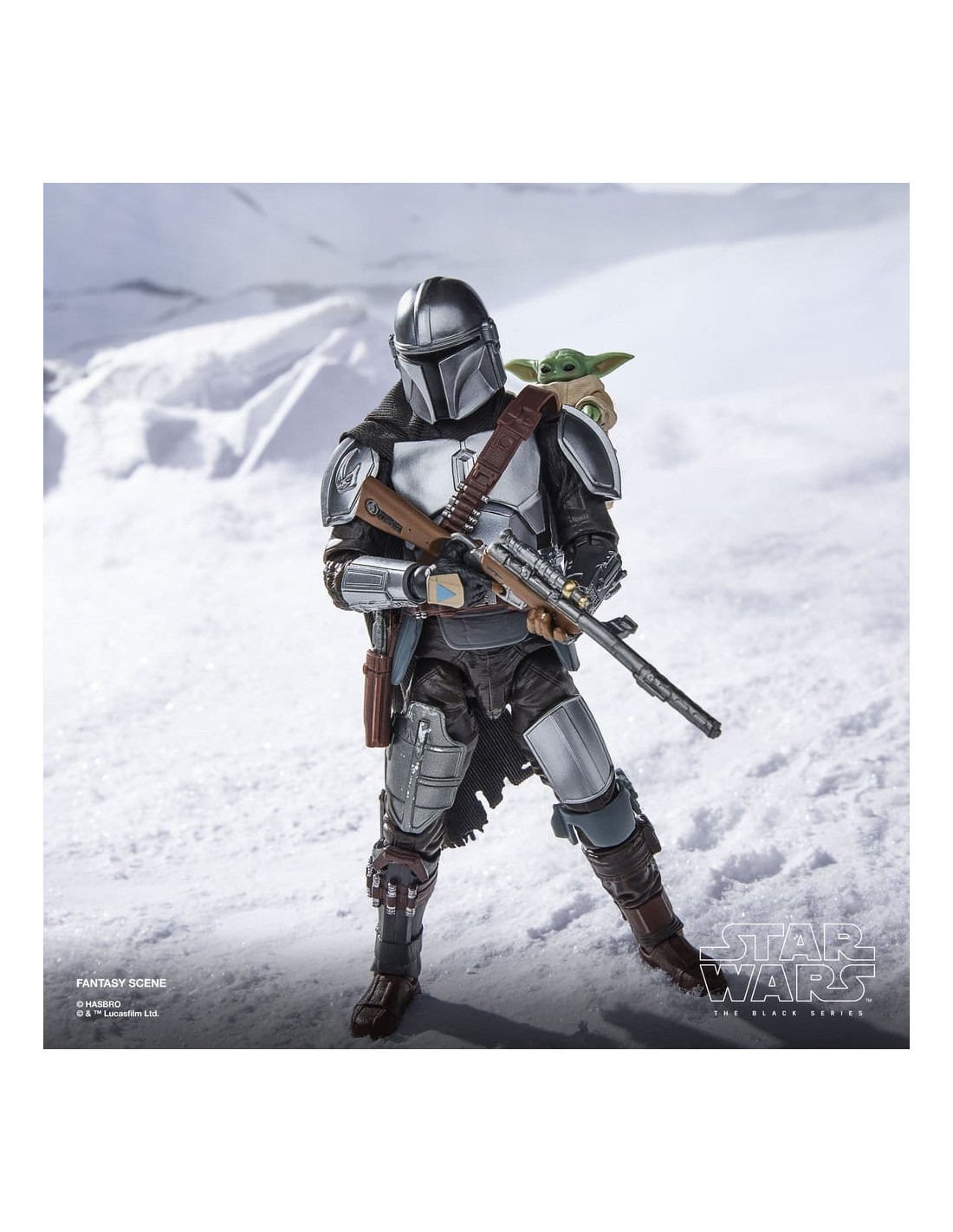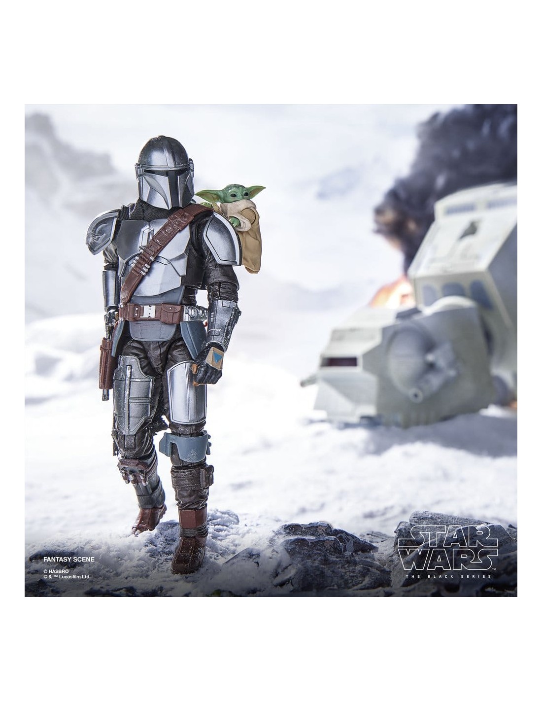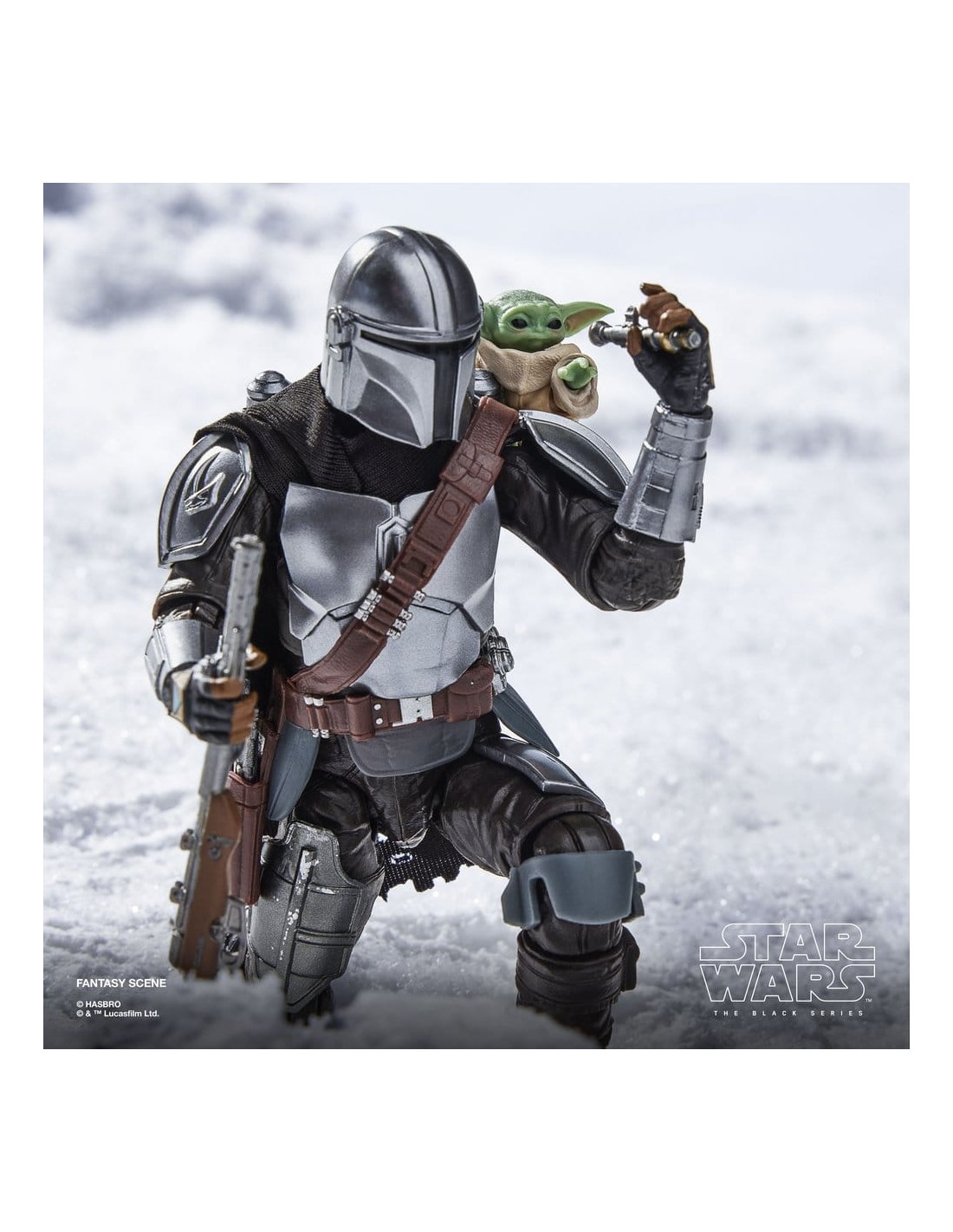 Hasbro dentro de su línea de Star Wars Black Series nos presenta la figura de The Mandalorian & Grogu.Esta figura cuenta con múltiples puntos de articulación, viene en un embalaje individual y su altura aproximada es de 15 cm.