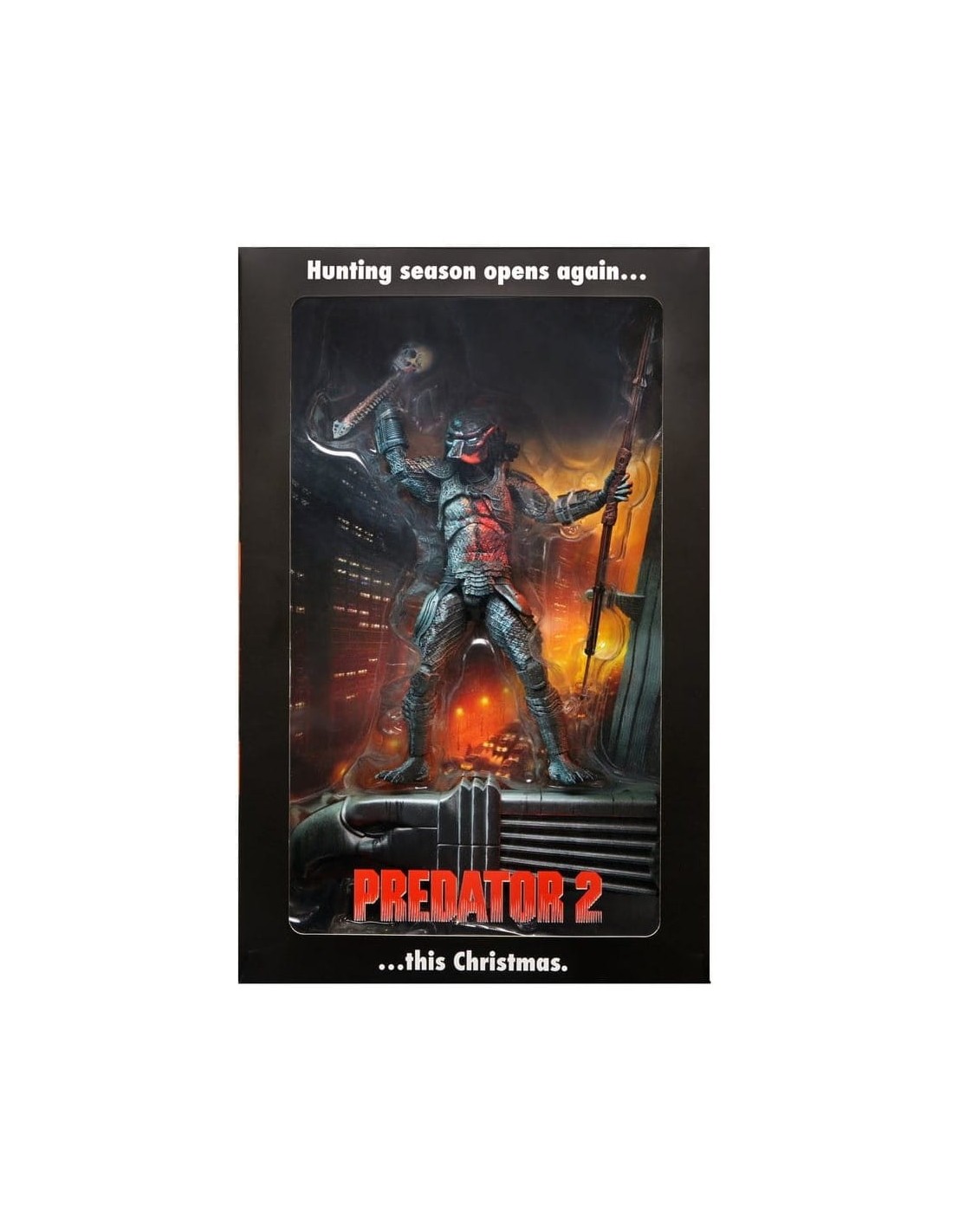 Inspirada en el póster cinematográfico de la infame secuela de 1990, esta figura de Depredador presenta una intrincada decoración que recrea el aspecto del póster original.