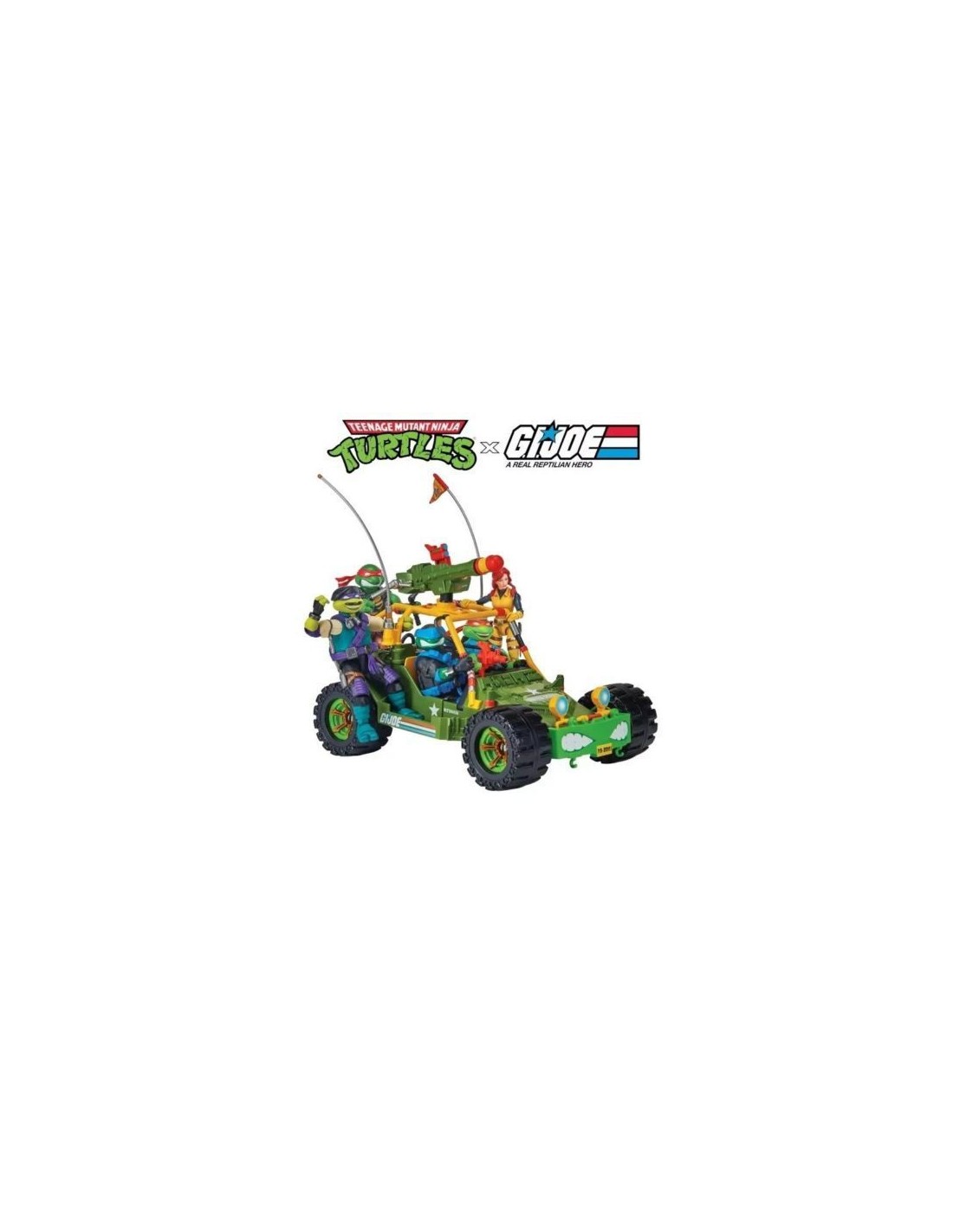 Este vehículo A.W.E. Shell-Striker con figura forma parte de la línea Teenage Mutant Ninja Turtles x G.I. Joe Crossover Classics de Playmates. El set viene en una caja impresa.