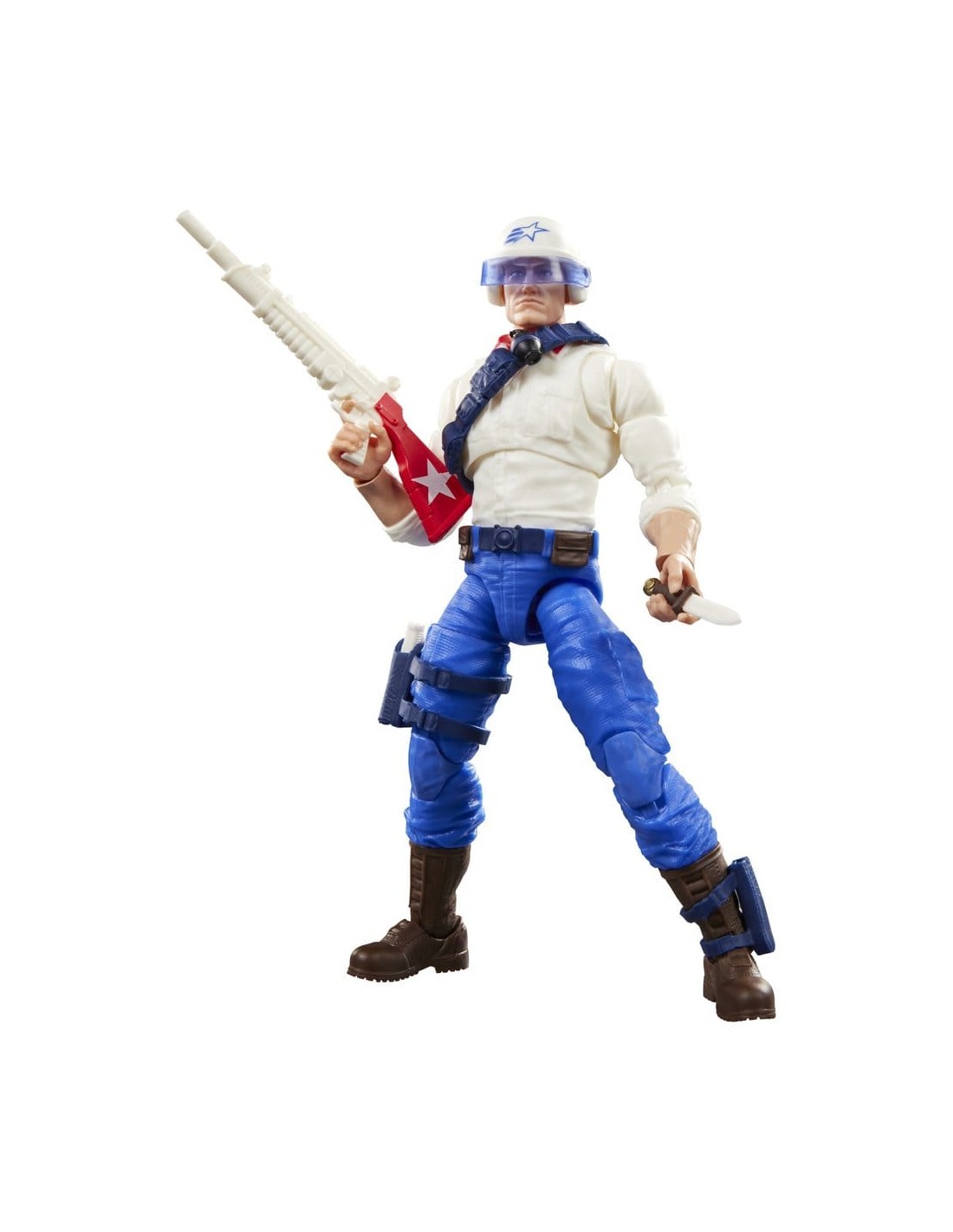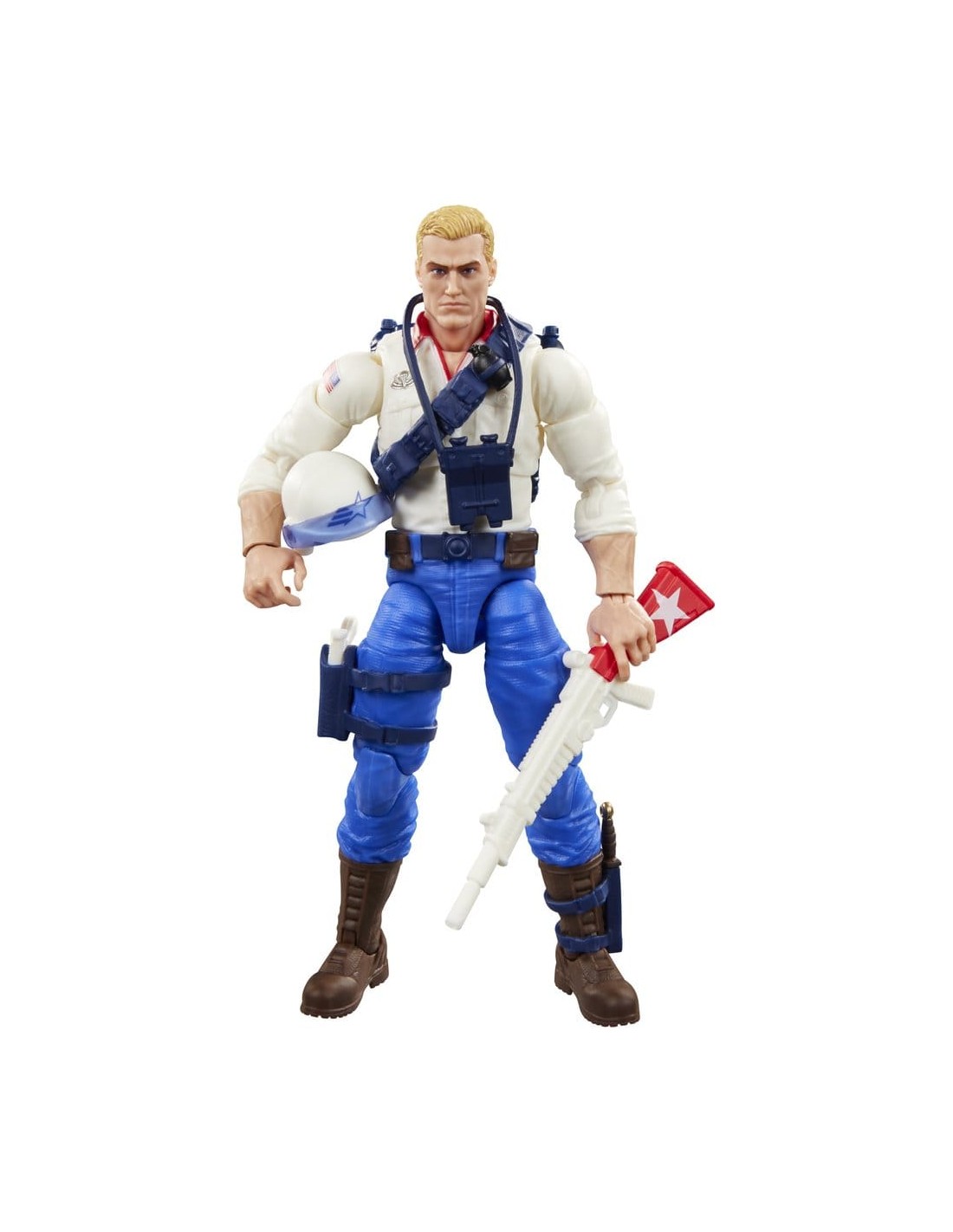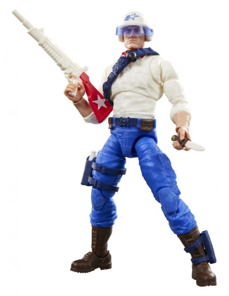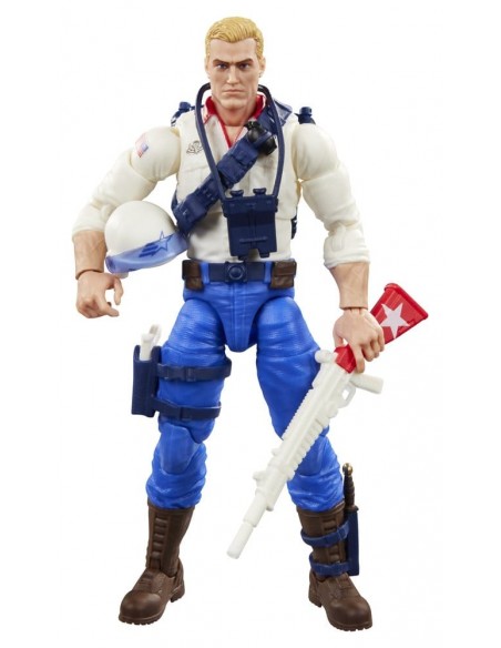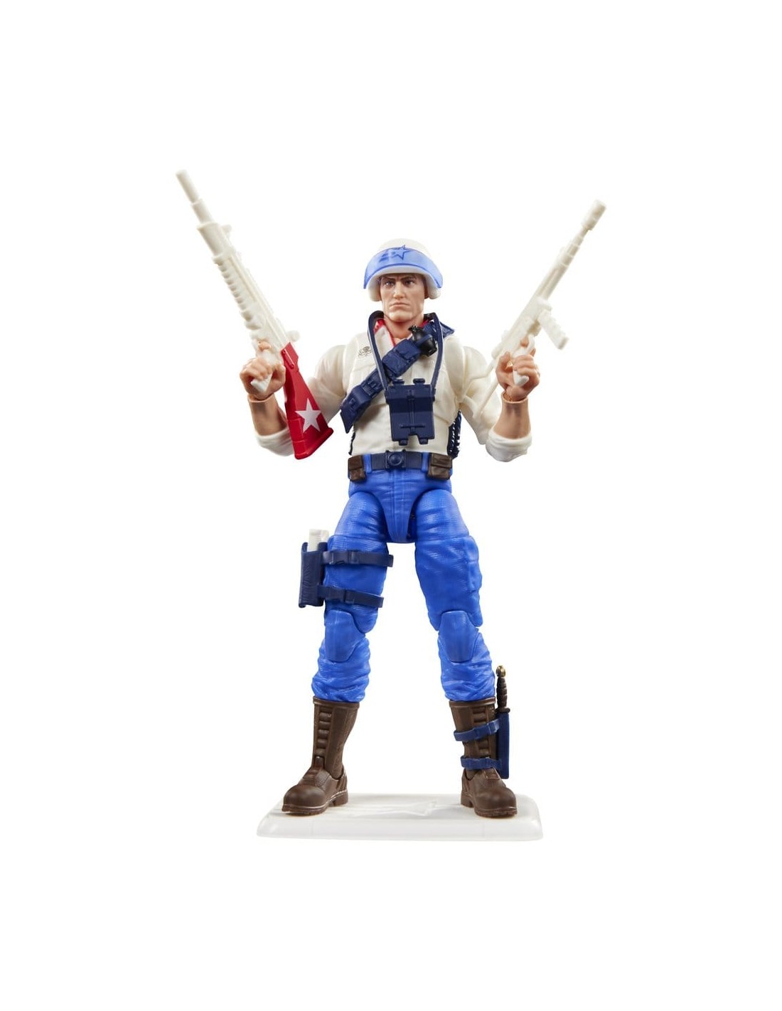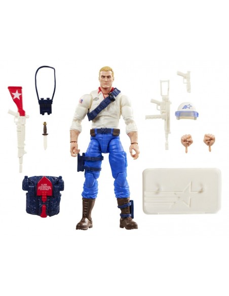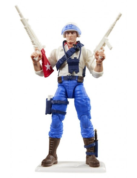 G.I. Joe es un equipo de fuerzas especiales altamente capacitado, integrado por hombres y mujeres provenientes de todas partes del planeta. Son elegidos para defender el mundo contra las amenazas de Cobra, una despiadada organización criminal que busca alcanzar el dominio global. Dondequiera que haya problemas, ahí estará G.I. Joe. Duke llega a la línea de figuras G.I. Joe Classified Series y está listo para la acción con múltiples puntos de articulación para que puedas colocarlo en diferentes poses. La figura de Duke viene con 11 accesorios inspirados en el personaje, incluyendo, casco, prismáticos, manos alternativas con puños cerrados, mochila, cuchillo, base con clavijas y armas. Al alistarse, Duke ya hablaba francés, alemán e inglés con fluidez. Se graduó como el mejor de su promoción en la academia de infantería aérea. Amplió su condición de políglota al estudiar los dialectos de Asia y del Sureste de Asia en la Escuela Especial de Idiomas. Tras dirigir cuatro escuelas distintas de Fuerzas Especiales, Duke rechazó una comisión y aceptó servir como Sargento primero de G.I. Joe.