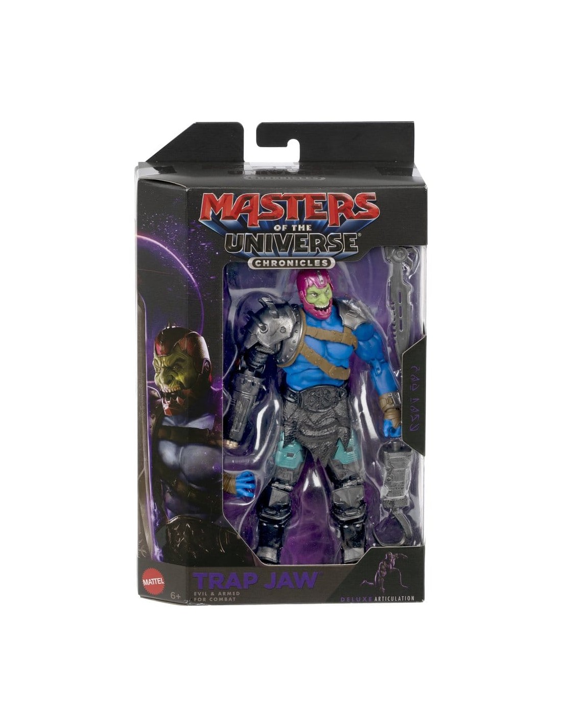 Esta figura de acción de Chronicles Trap Jaw celebra la película de acción real de Masters of the Universe de 2026 y las dramáticas batallas entre el bien y el mal a escala 1:12. La figura de acción presenta el alto nivel de detalle de un artículo de coleccionista y un diseño fiel a la película con la armadura y el brazo de gancho del villano. Está modelada a semejanza del actor Sam C. Wilson. Este villano con la mandíbula "mecánica" y un brazo de gancho tiene 30 puntos de articulación, lo que proporciona una capacidad de pose de primera calidad. La figura viene en un llamativo empaque de lujo y se puede exhibir tanto dentro como fuera de la caja. Los colores y el diseño pueden variar.
