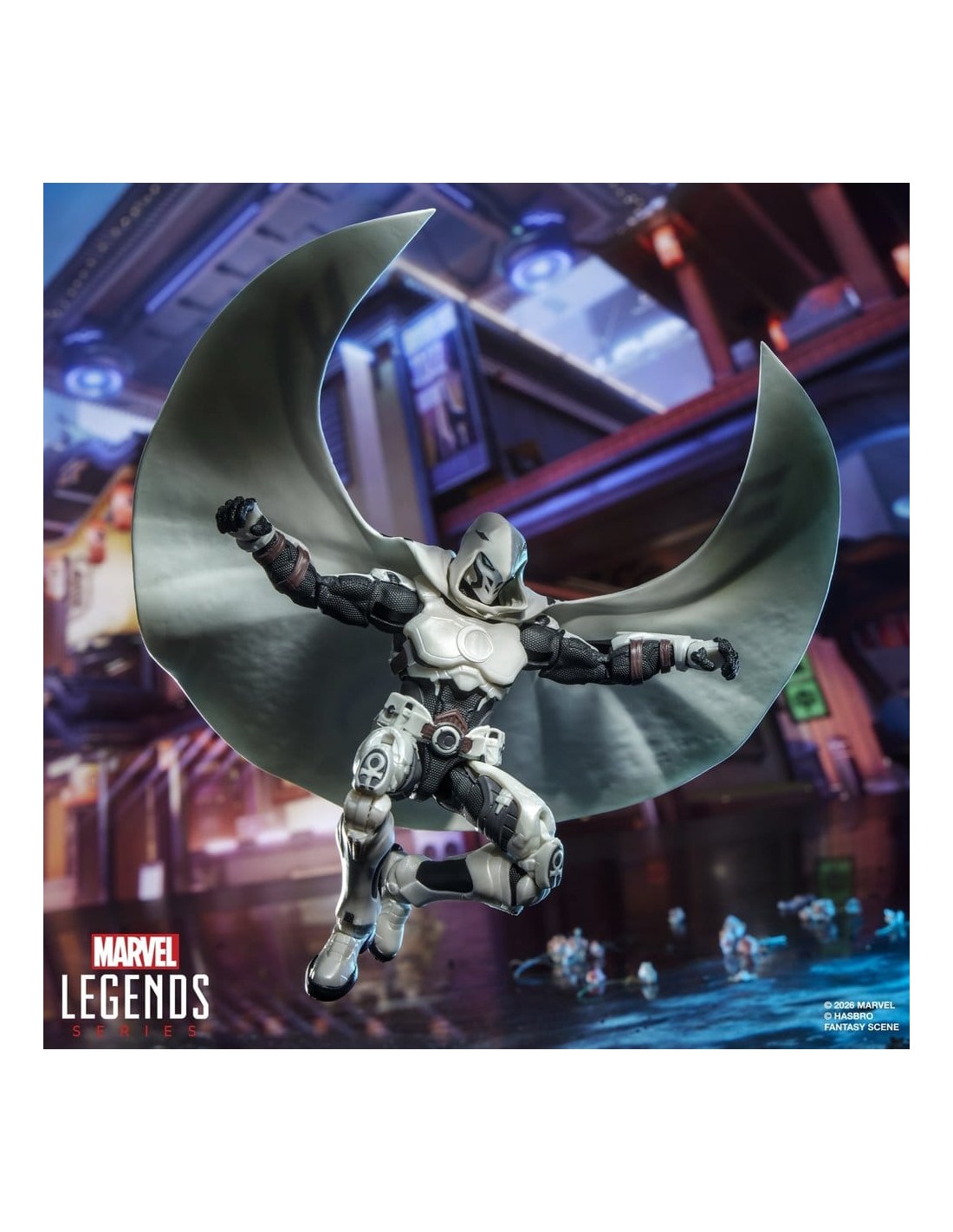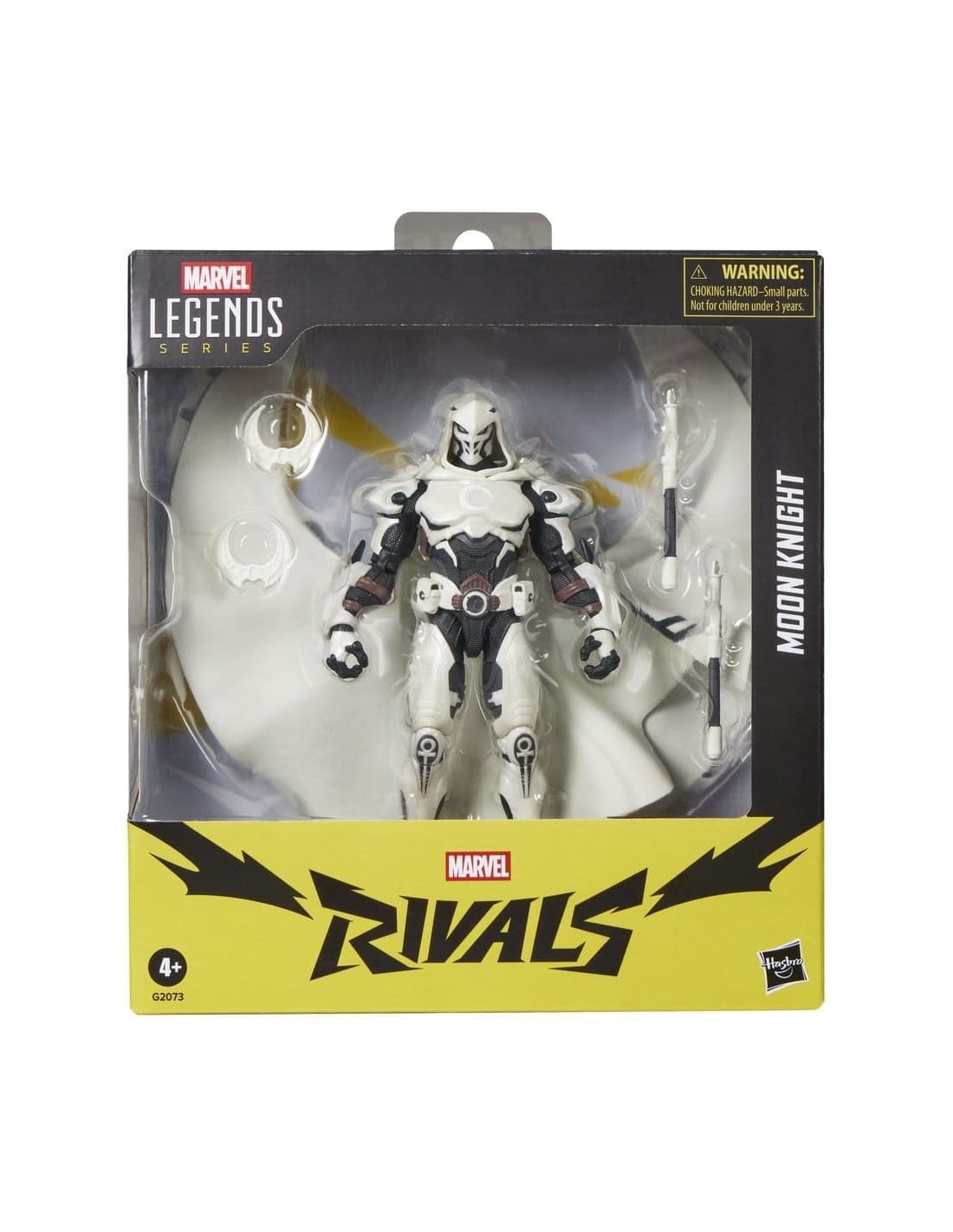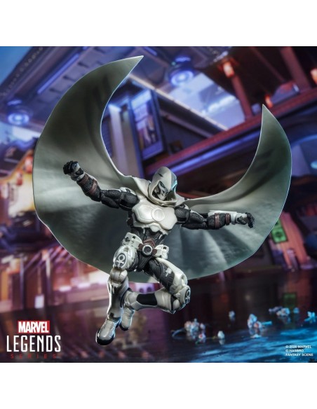 ¡Trae la emoción y la maravilla del Universo Marvel a tu colección con la figura de acción de Caballero Luna, de la línea Marvel Legends de Hasbro! Esta figura Marvel coleccionable a escala de 15 cm está inspirada en la apariencia del personaje de los cómics en el videojuego Marvel Rivals. Estas figuras cuentan con diseño premium y cabeza, brazos y piernas completamente articulables. Este set de figura Marvel Rivals viene con 5 accesorios, incluyendo 2 dardos en forma de luna creciente, 2 bastones de combate y una capa alternativa con forma de luna. Las figuras de acción Marvel de Hasbro a escala de 15 cm son ideales para exhibirlas en las colecciones de los fans. Reimagina escenas inspiradas en el videojuego en tu estante con los artículos de colección Marvel Rivals.