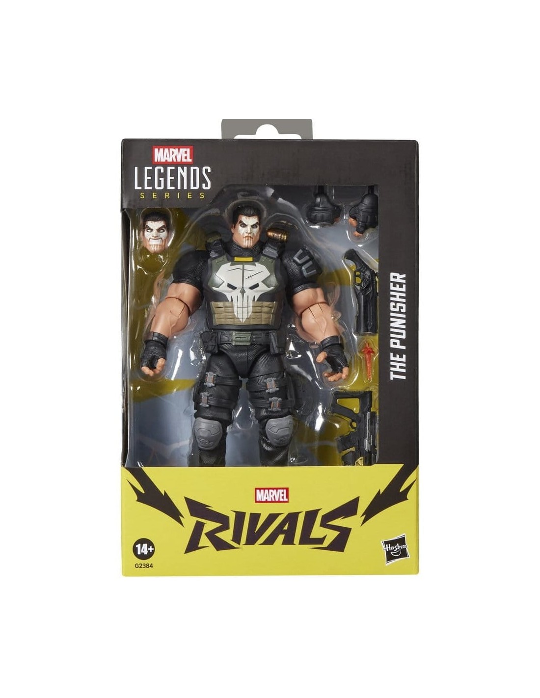¡Trae la emoción y la maravilla del Universo Marvel a tu colección con la figura de acción de The Punisher, de la línea Marvel Legends de Hasbro! Esta figura Marvel coleccionable a escala de 15 cm está inspirada en la apariencia del personaje de los cómics en el videojuego Marvel Rivals. Estas figuras cuentan con diseño premium y cabeza, brazos y piernas completamente articulables. Esta figura de acción Marvel Rivals viene con 9 accesorios, incluyendo cabeza alternativa, 2 manos alternativas, 4 efectos de combate y 2 armas para que la exhibas desatando sus habilidades de ataque con sus armas Deliverance y Adjudication. Las figuras de acción Marvel de Hasbro a escala de 15 cm son ideales para exhibirlas en las colecciones de los fans. Reimagina escenas inspiradas en el videojuego en tu estante con los artículos de colección Marvel Rivals.