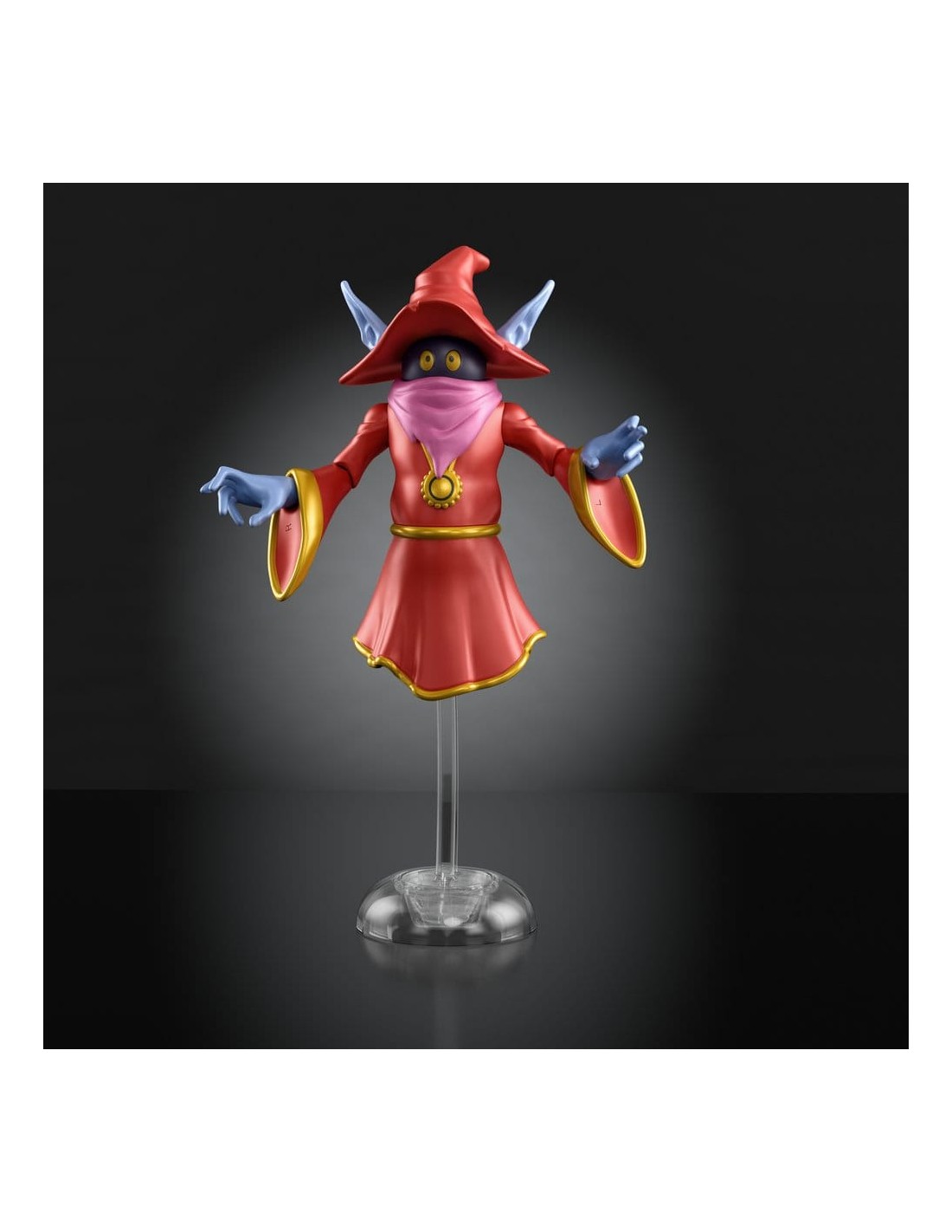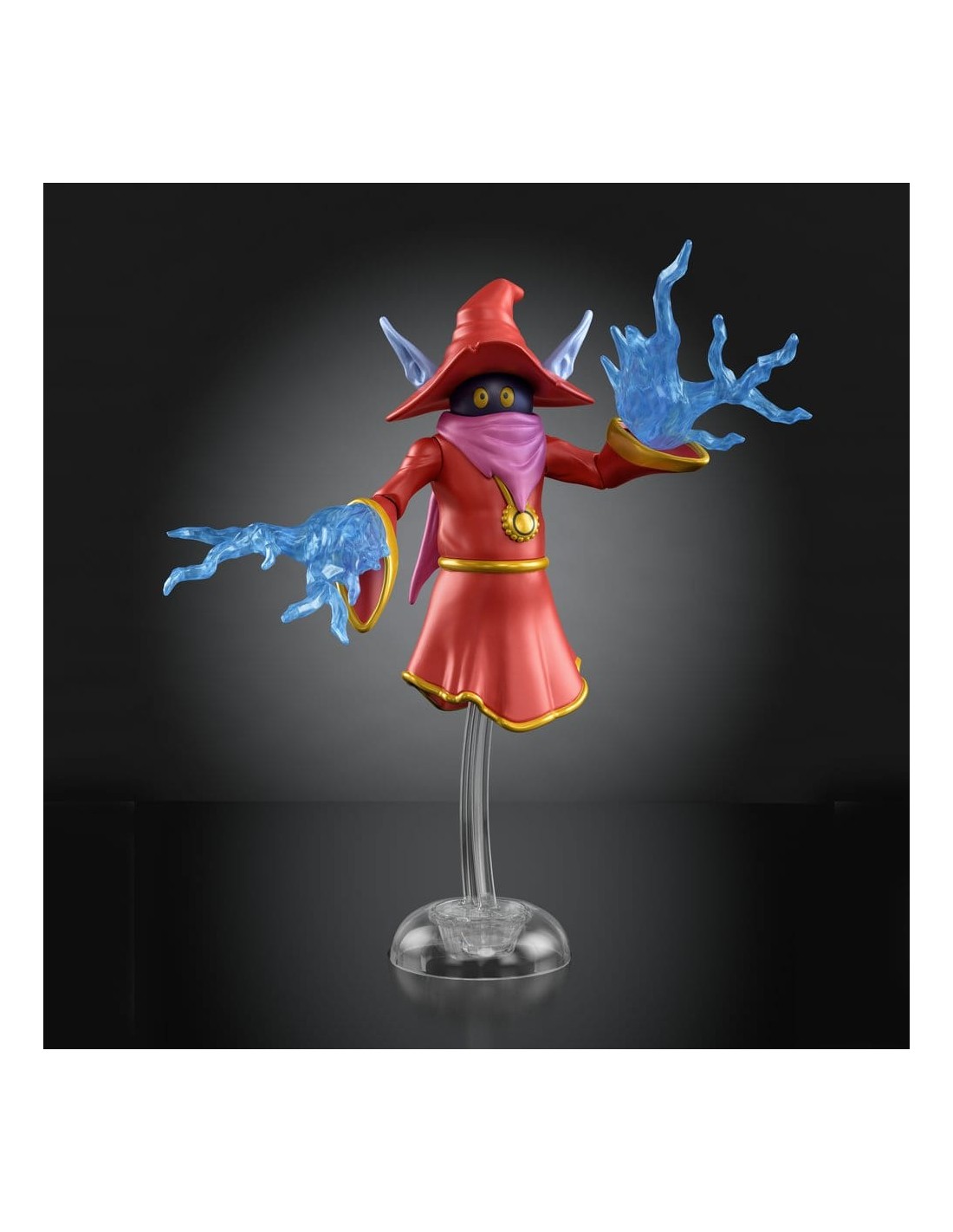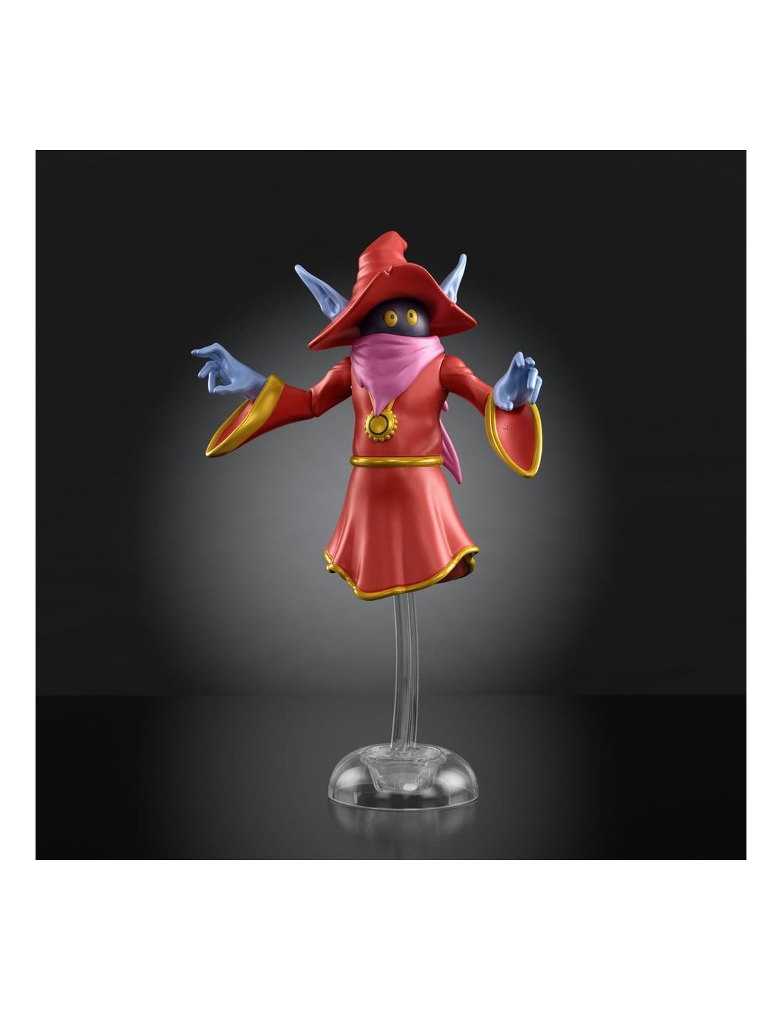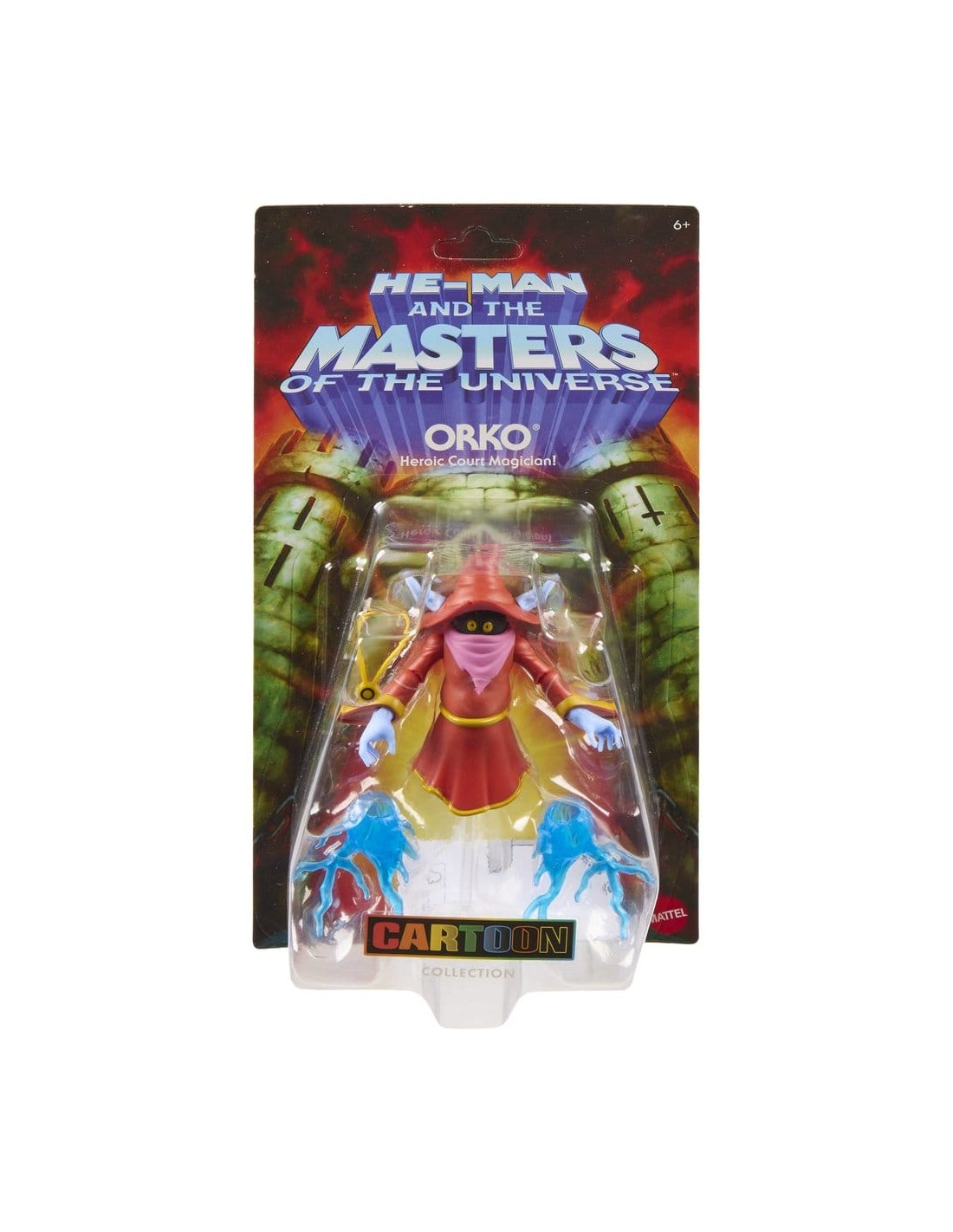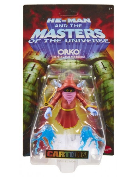 Esta figura de acción de Orko de la colección de dibujos animados Origins está inspirada en las populares figuras de acción MOTU 200X, que a su vez están inspiradas en la serie de televisión "He-Man and the Masters of the Universe". Esta versión reinterpretada del juguete lanzado en 2002 tiene un estilo retro y al mismo tiempo cuenta con capacidades de movimiento modernas. El mago flotante de MOTU está diseñado a escala como una figura Origins de aproximadamente 14 cm y tiene puntos de articulación, partes del cuerpo intercambiables, así como un soporte transparente y efectos de "rayo mágico" para sus manos, inspirados en el episodio "Duelo de los Magos". Se reservan variaciones de color y diseño.