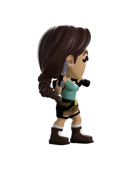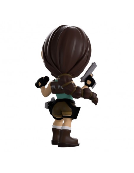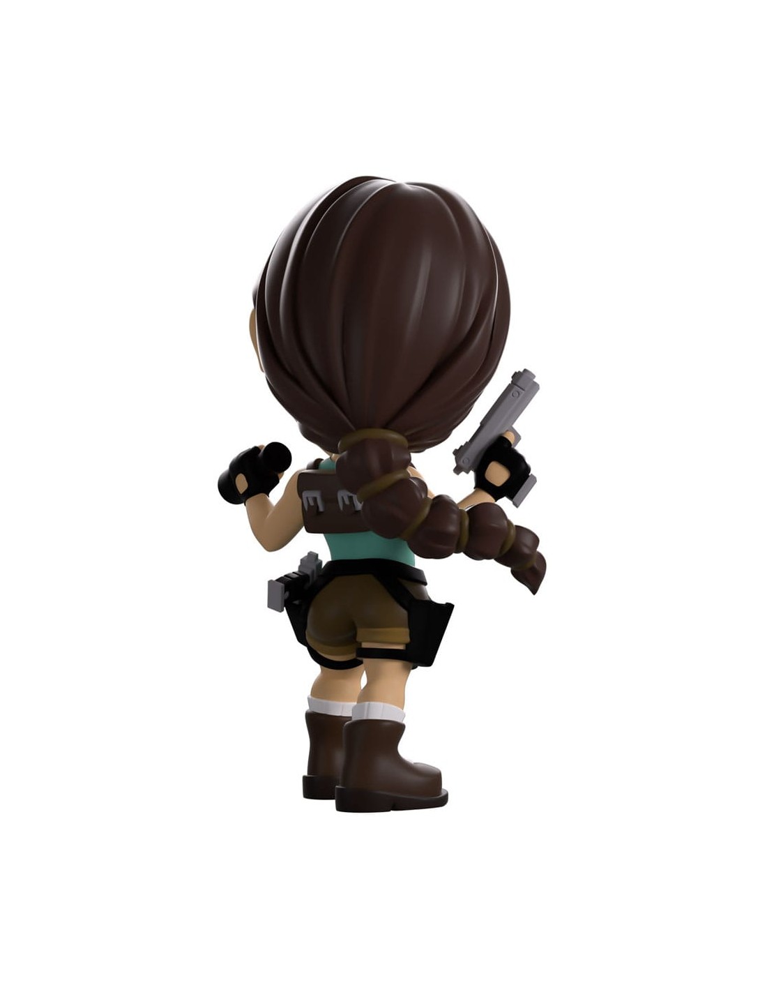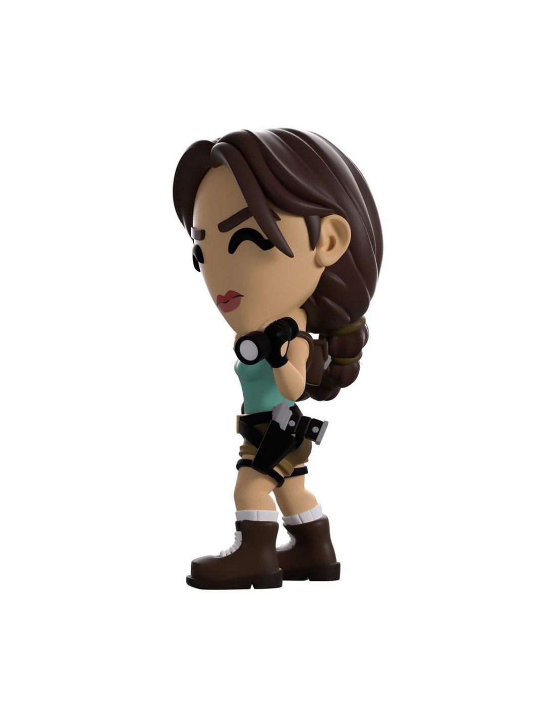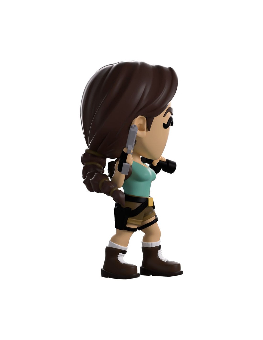 Lara Croft ha seguido los mapas e investigado las pistas para localizar el tesoro escondido en Youtooz. ¡Lo que no sabe es que es su debut! Con una altura de 11 cm, sostiene una pistola en su mano derecha con guantes, mientras que con la izquierda ilumina hacia afuera con una linterna. Sus labios rosados y serios están fruncidos, y su largo cabello castaño está recogido en una coleta que rodea su espalda. Lleva su icónico top verde y pantalones cortos caqui, y una segunda pistola descansa en la funda alrededor de su cintura. Sus calcetines blancos asoman por encima de sus gruesas botas marrones.