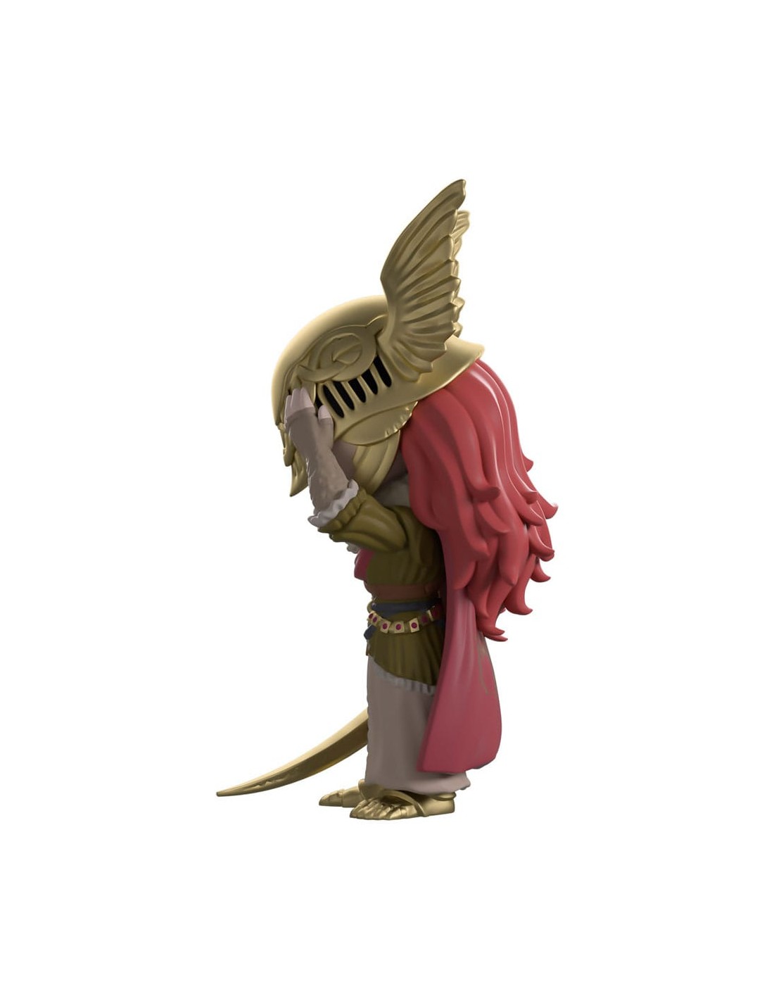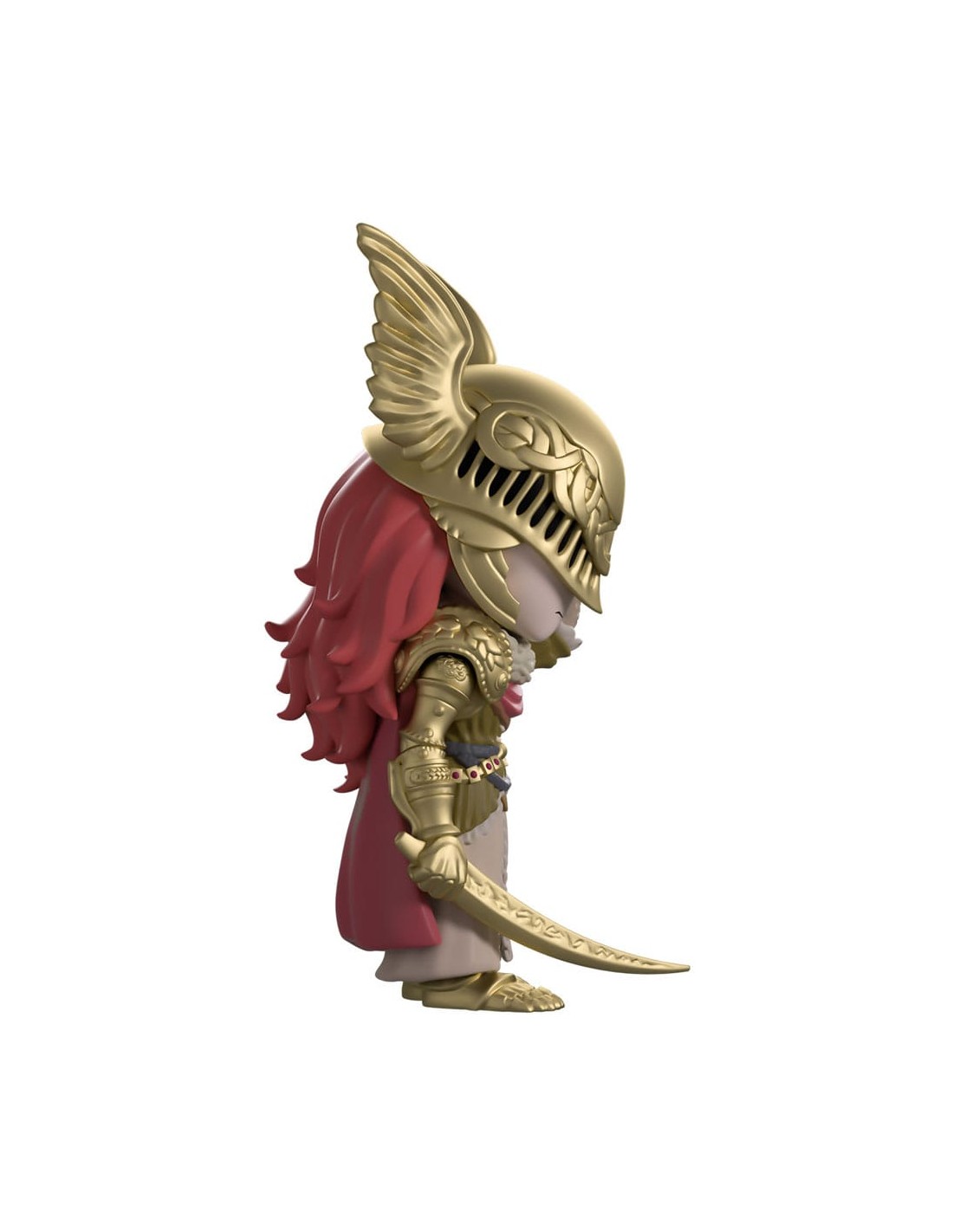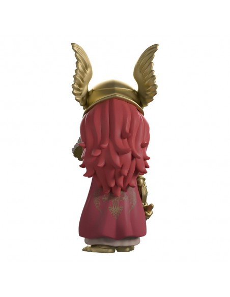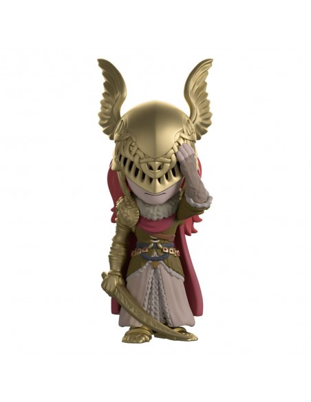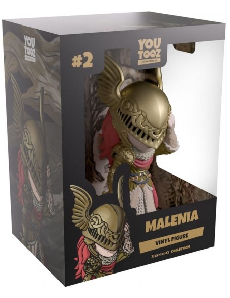 ¡Nos hemos abierto paso entre las espirales del Árbol de Hali para traerles a Malenia en su debut en Youtooz! Con sus 14 cm de altura, la cabeza agachada alza una mano hacia el ornamentado yelmo dorado alado que cubre su rostro angustiado. Largos mechones de cabello granate caen por su espalda hasta descansar sobre su ondulante capa.