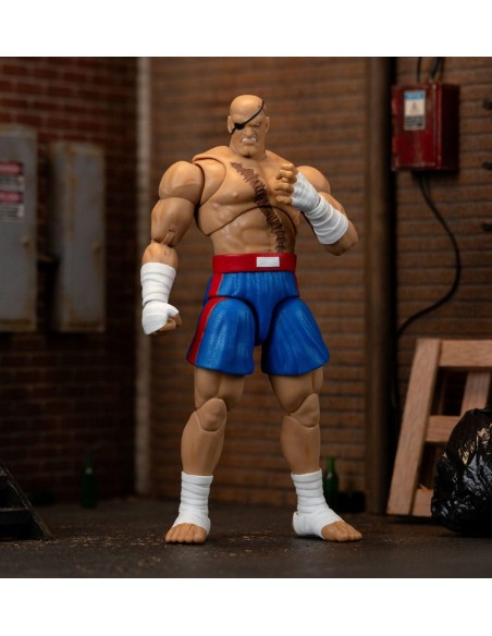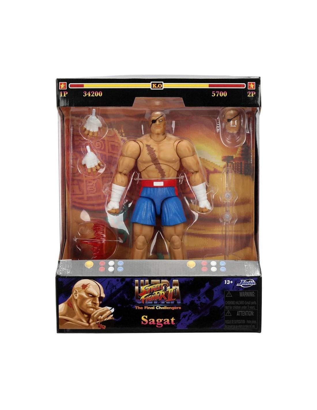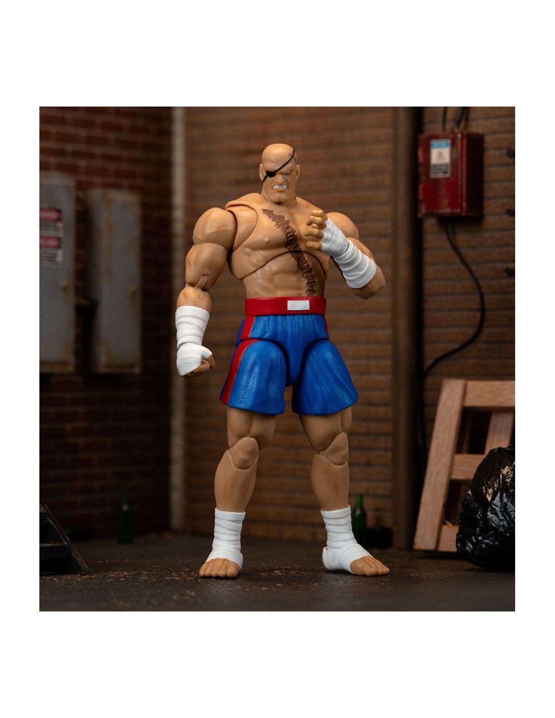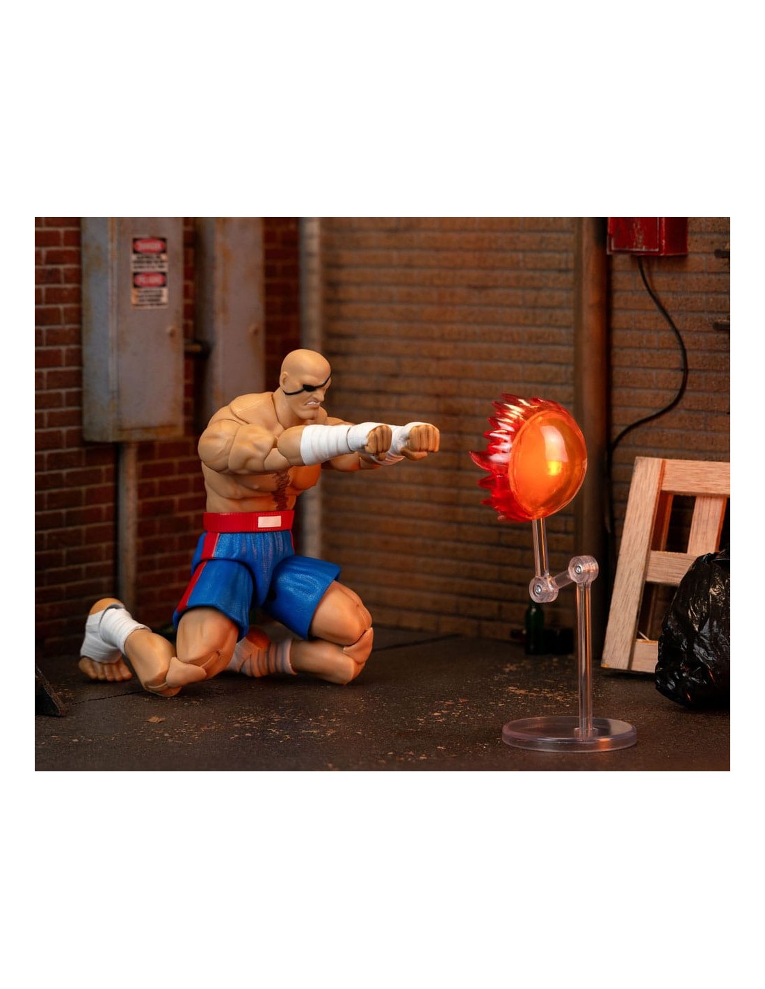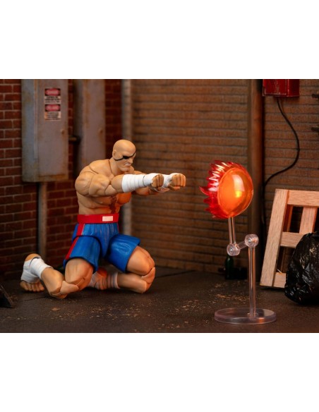 Figura articulada con accesorios a escala 1/12, tamaño aprox. 15 cm. Viene en una caja con ventana. . Mide 15 cm y está basada en el personaje del videojuego "Street Fighter II". Cuenta con 25 puntos de articulación y contiene 1x cabeza extra, 1x par de manos, 1x efecto de combate y 1x soporte articulado.