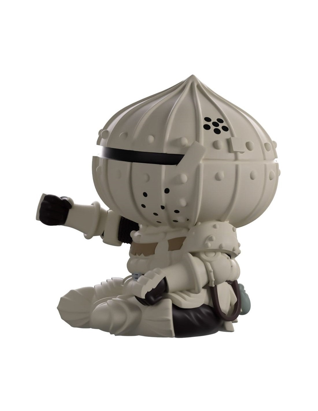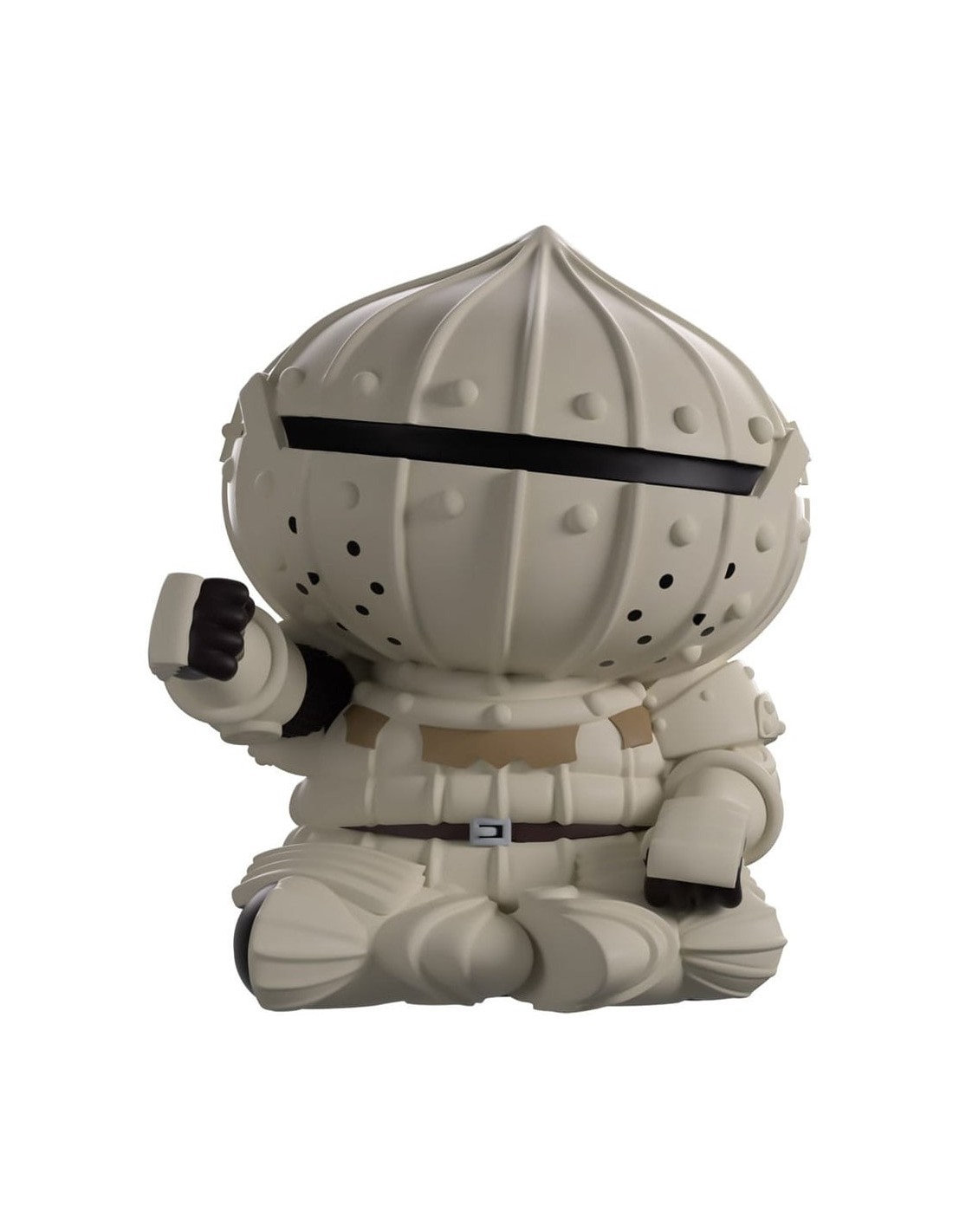 Ah, oh... hola. Disculpen, estaba pensando... en mi debut en Youtooz... Con 12 cm de altura, con los brazos extendidos a los lados mientras alaba al sol con devoción, un gran yelmo le cubre la cabeza mientras mira hacia el horizonte a través de una fina abertura frontal, con una única pluma roja curvada en la parte superior.