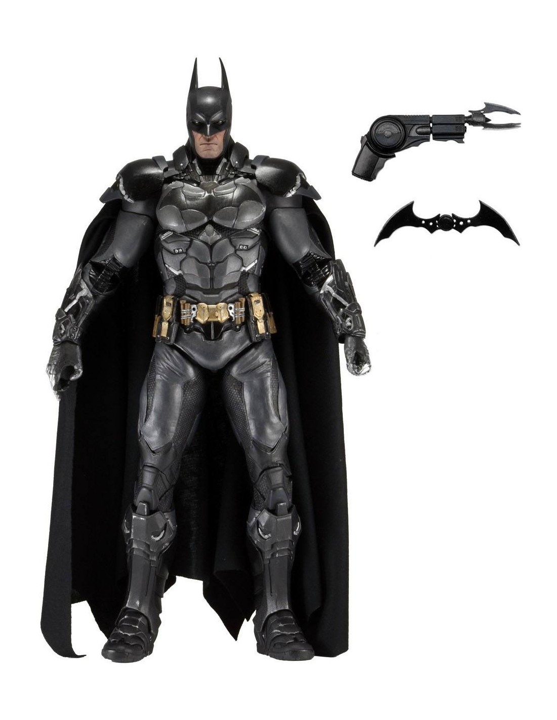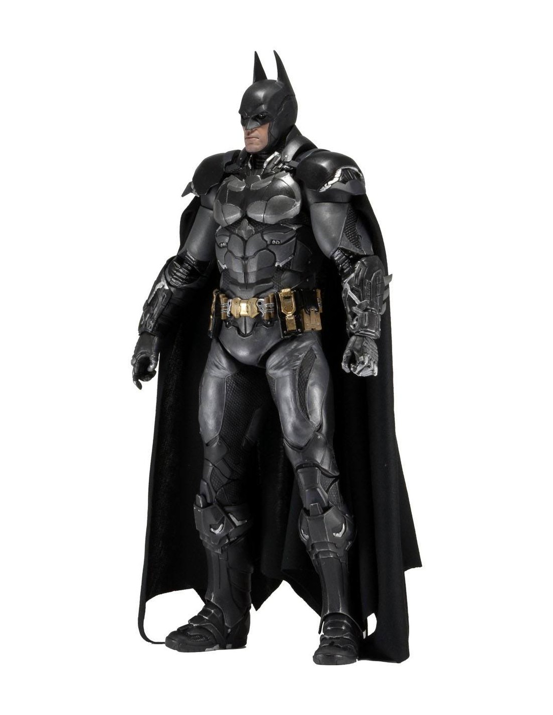 Esta impresionante figura de acción se basa en la aparición del Caballero Oscuro en el próximo Arkham Knight, el capítulo final de la aclamada saga de videojuegos. La figura mide más de 46 cm de altura y presenta un increíble nivel de detalle, fiel al del juego.