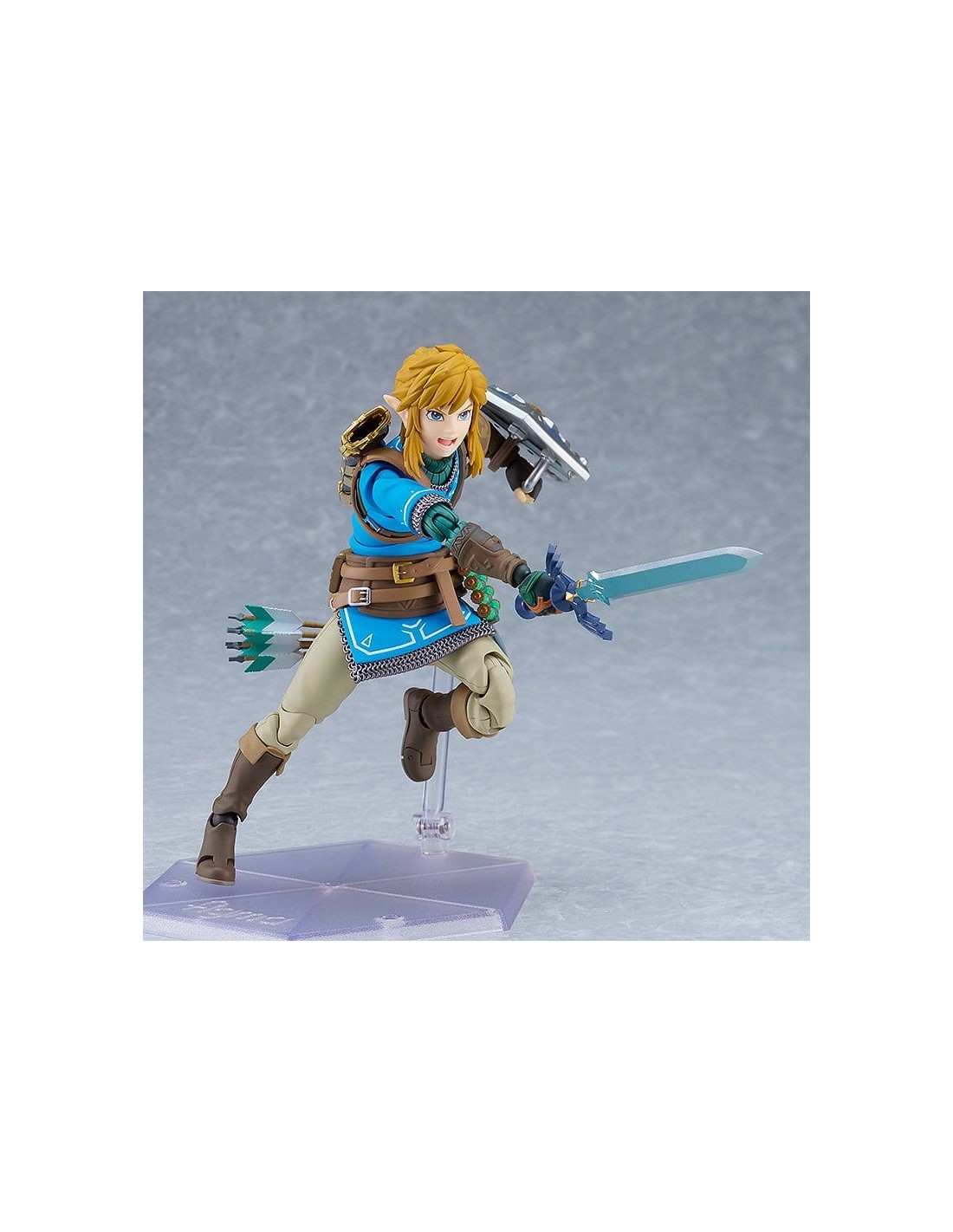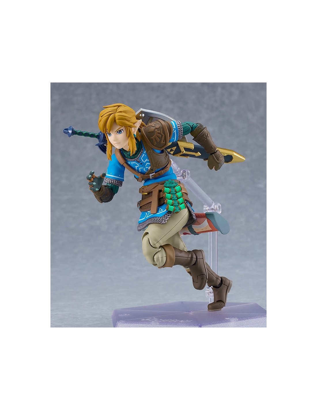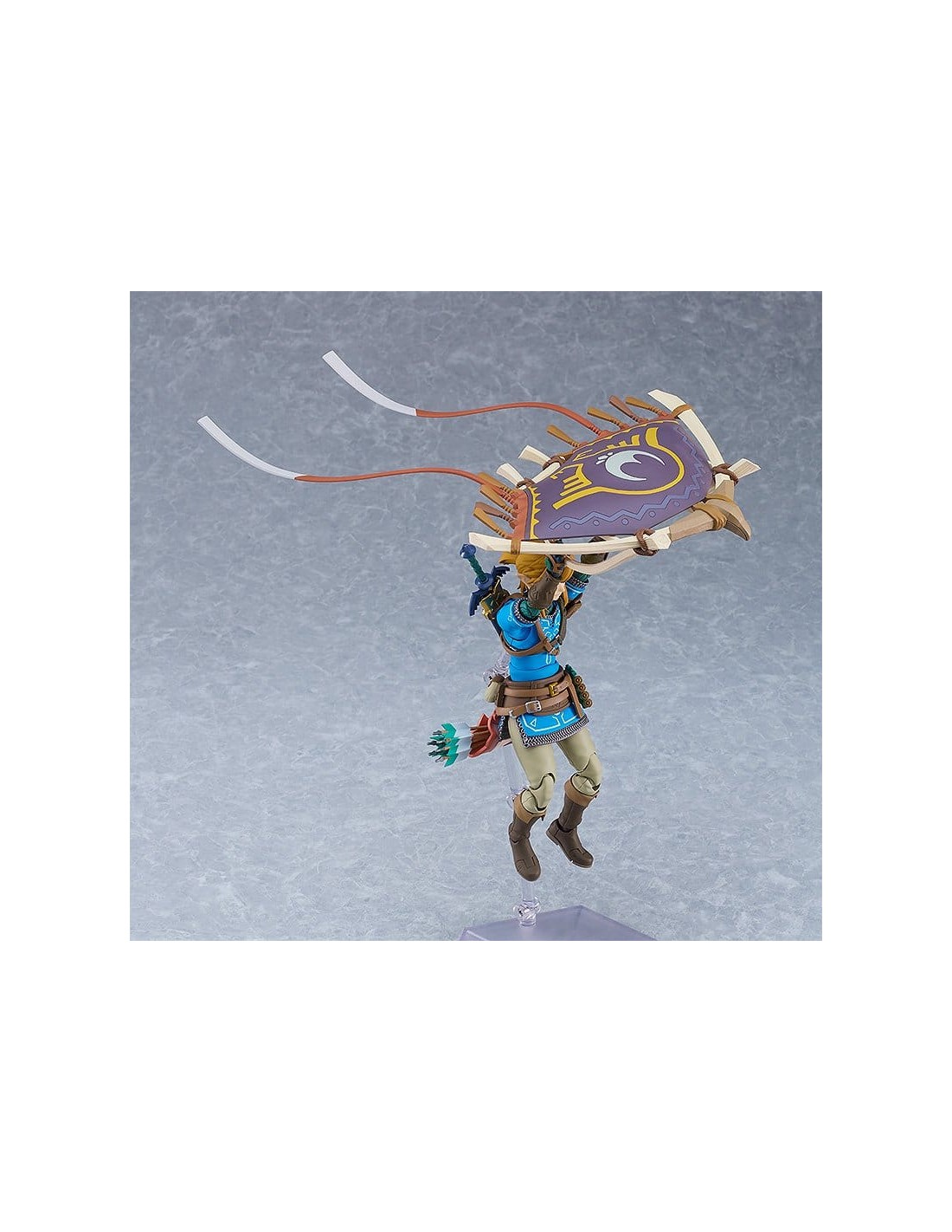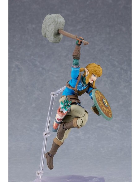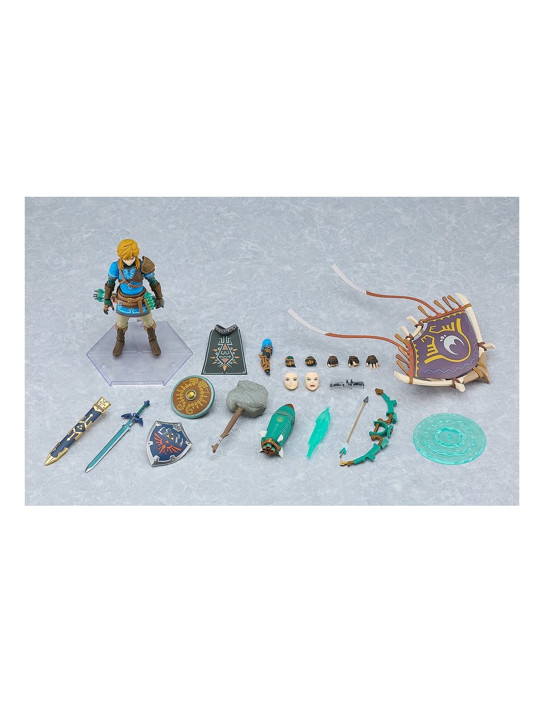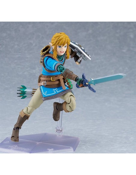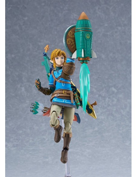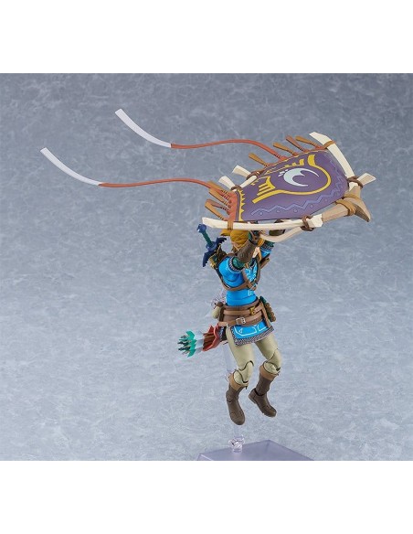 Good Smile Company presenta, dentro de la colección Figma, edición deluxe de la figura de Link. Mide 15 cm y está basada en su apariencia en el videojuego "The Legend of Zelda: Tears of the Kingdom". Incluye placas faciales (cara estándar, gritando y sonriente) y los siguientes accesorios: Espada Maestra, escudo Hyliano y capucha Hyliana. Esta edición incluye además: parapente, cohete, piezas de efecto cohete, arco de construcción, flechas, piezas de efecto Ascender, escudo del viajero, martillo de roca y brazo derecho del Rey Rauru.