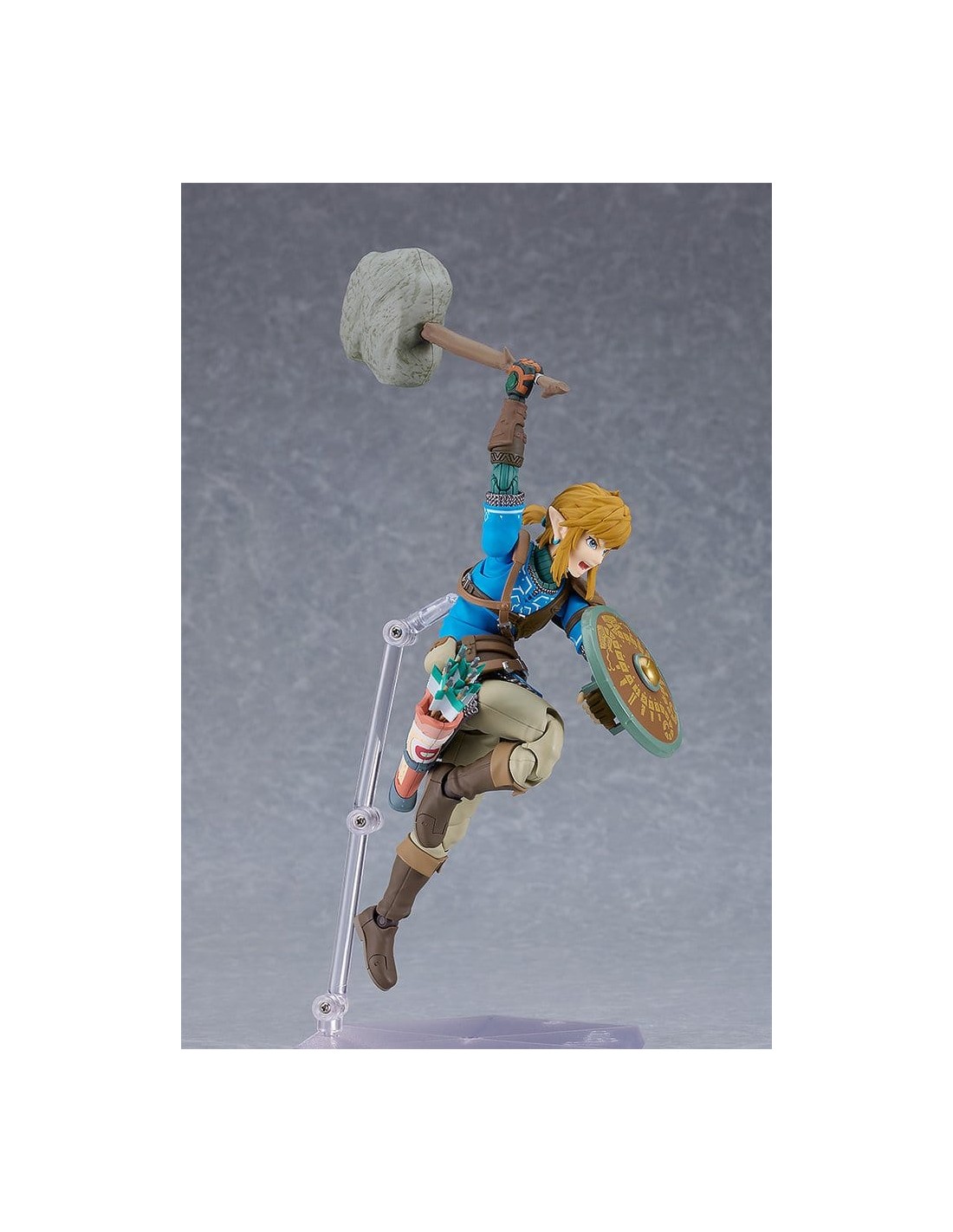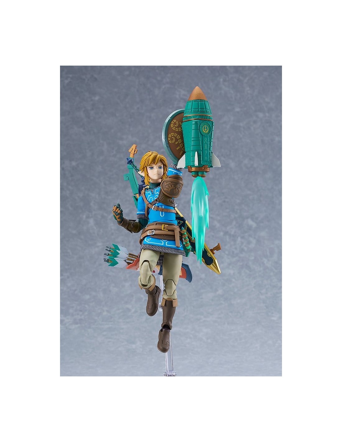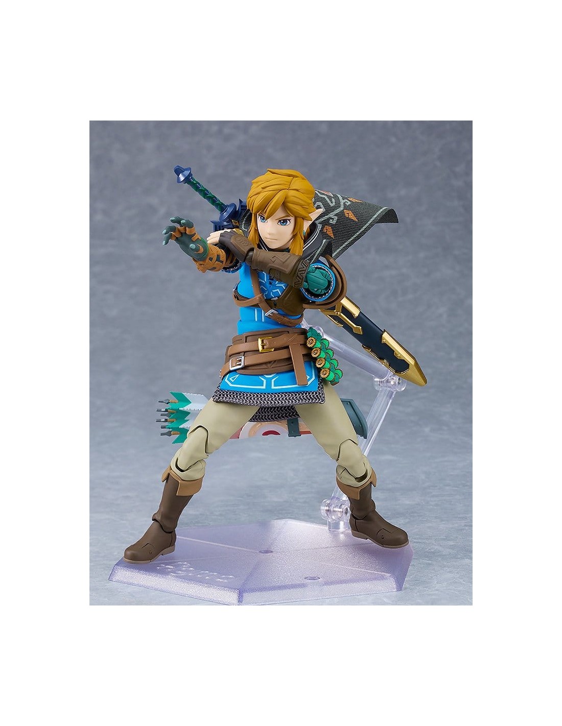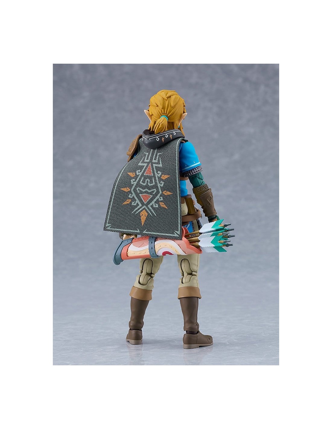 Good Smile Company presenta, dentro de la colección Figma, edición deluxe de la figura de Link. Mide 15 cm y está basada en su apariencia en el videojuego "The Legend of Zelda: Tears of the Kingdom". Incluye placas faciales (cara estándar, gritando y sonriente) y los siguientes accesorios: Espada Maestra, escudo Hyliano y capucha Hyliana. Esta edición incluye además: parapente, cohete, piezas de efecto cohete, arco de construcción, flechas, piezas de efecto Ascender, escudo del viajero, martillo de roca y brazo derecho del Rey Rauru.