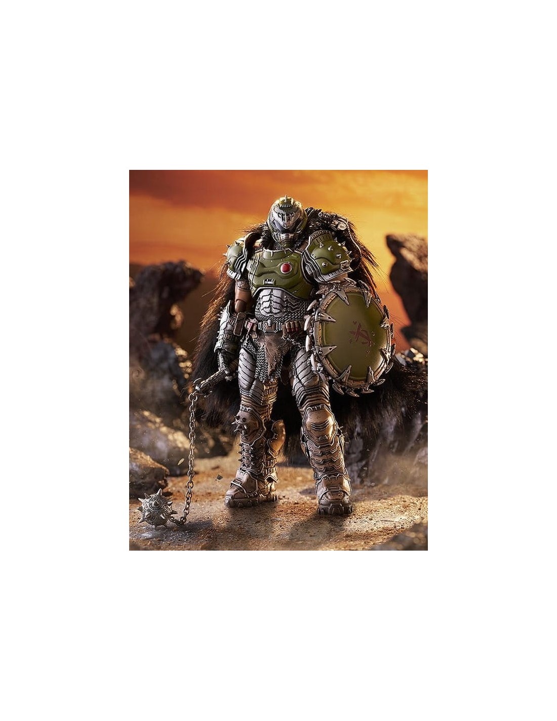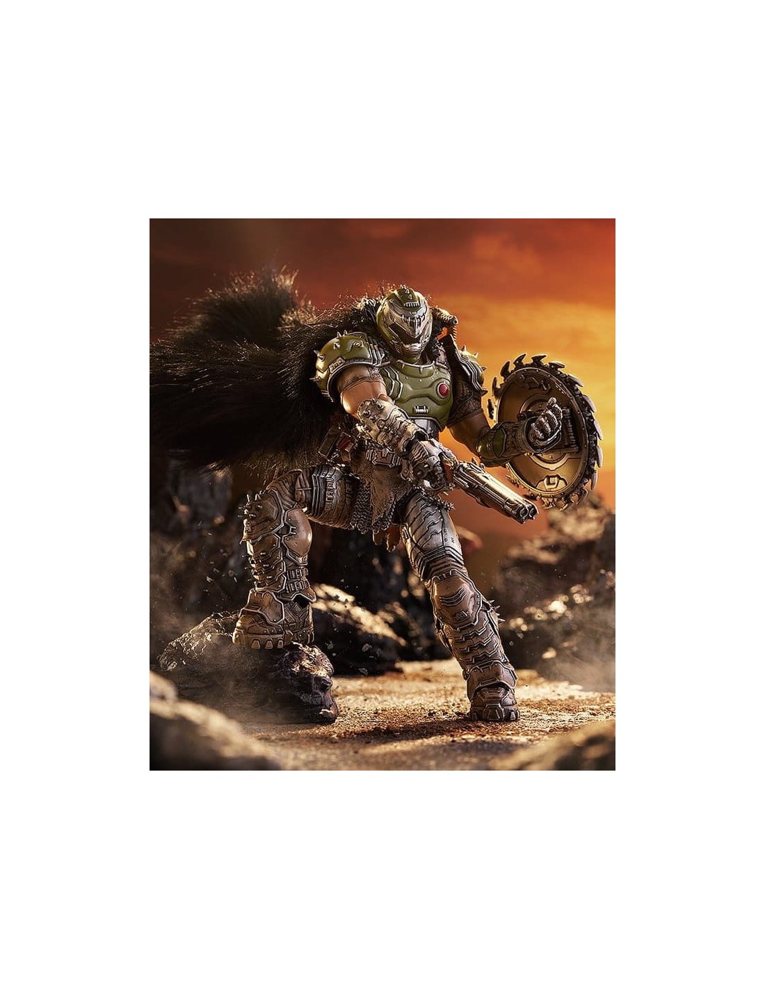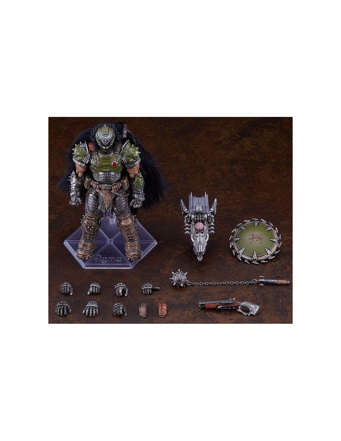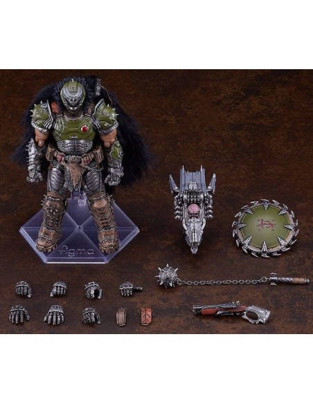 ¡Del popular juego "DOOM: THE DARK AGES" llega una figma del personaje principal, el DOOM SLAYER! Partes opcionales: - Mayal - Súper escopeta - Escudo - Triturador de cráneos - Parte del hombro para poner/quitar la capa - Otras partes opcionales para diferentes poses