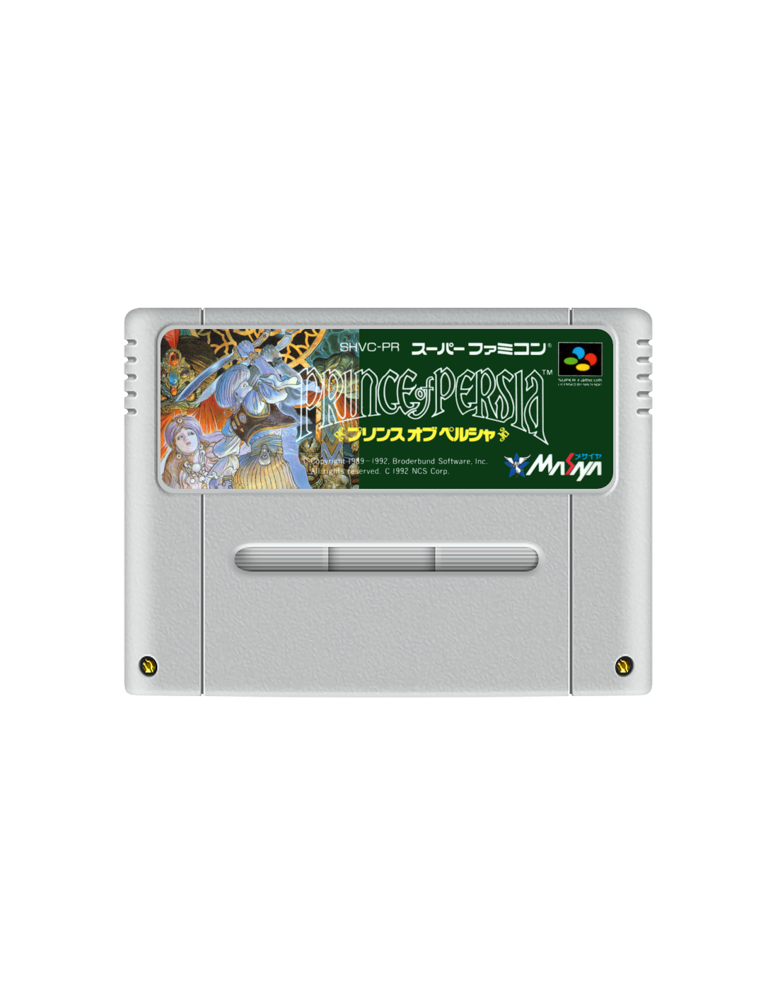 La galardonada aventura de software de computadora que tiene a personas en todas partes haciendo sonar sus sables está aquí para Super NES. Y ahora la animación es más detallada y los controles más receptivos. Incluso hay un modo de entrenamiento de cinco partes para agudizar tus habilidades para correr, saltar, escalar y luchar con espadas. Pero las arenas del tiempo están en tu contra. Porque debes sobrevivir a 20 peligrosas etapas, rescatar a la princesa del malvado Gran Visir Jaffar y reclamar la residencia real antes de que el reloj de arena esté vacío. Tenga cuidado con los pisos y techos impredecibles, las guillotinas que parten las tripas, los picos ocultos, las paredes de llamas y más. Los hechizos de Jaffar significan la perdición si no eres astuto y ágil. Y una legión de sirvientes salvajes, asombrosas amazonas y esqueletos inmortales harán sus bárbaras órdenes. Incluso tu propio alter ego es el enemigo. Atraviesa puertas invisibles y atraviesa portales espaciales. Encuentra recipientes con pociones mágicas, pero tómalos sabiamente. Pueden aumentar su vida o envenenarlo con la misma facilidad. Así que da cada paso con precaución, joven futuro príncipe, o el reino entero sufrirá la noche árabe más oscura de la historia.