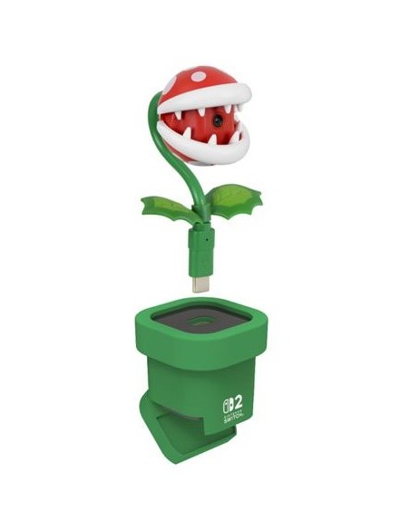 Su base con forma de tubería para conectarse al USB-C superior de Switch 2 sin cables de por medio, más recomendable para el Modo Portátil, como también cuenta con un mecanismo de cierre de la boca para reforzar la privacidad.