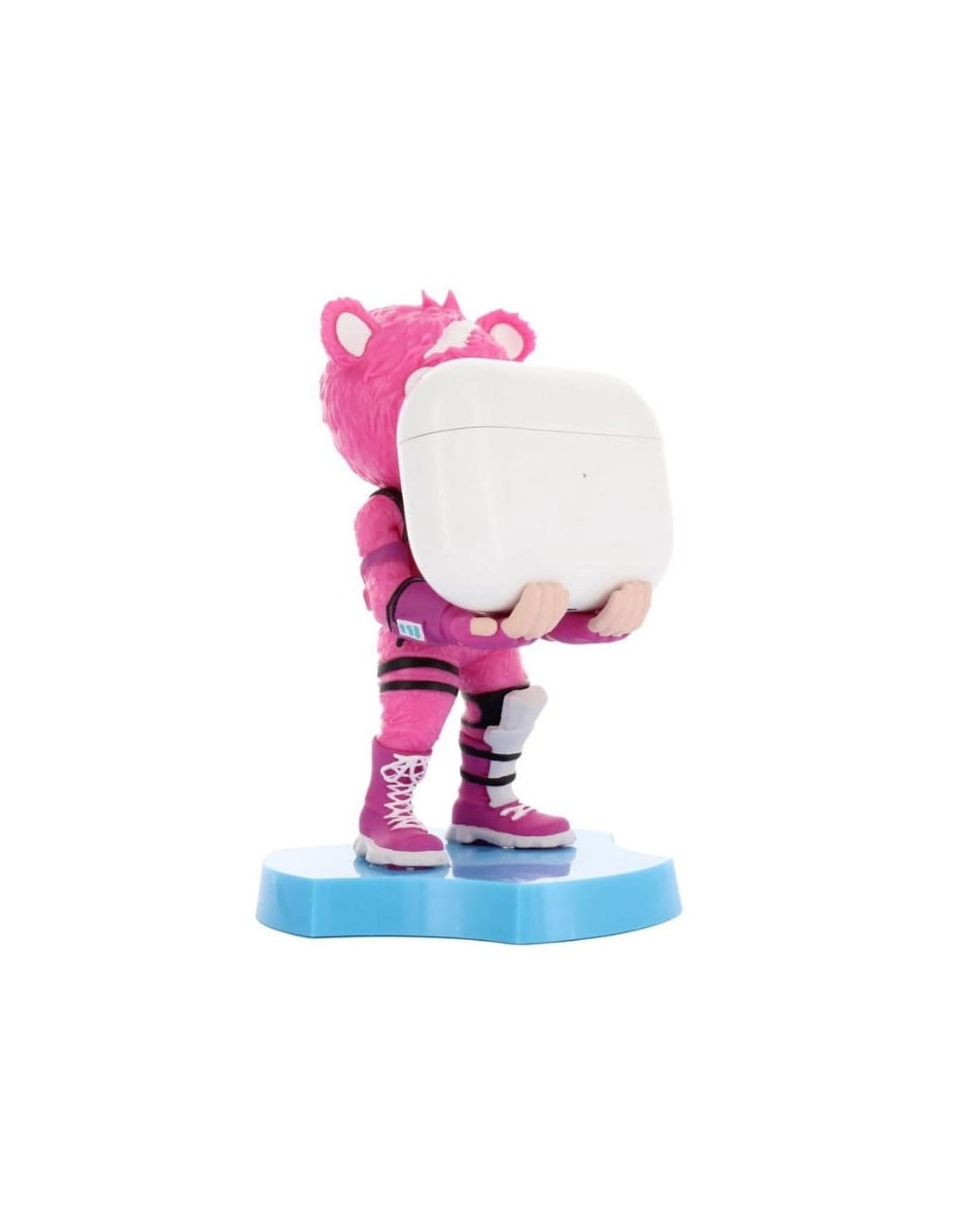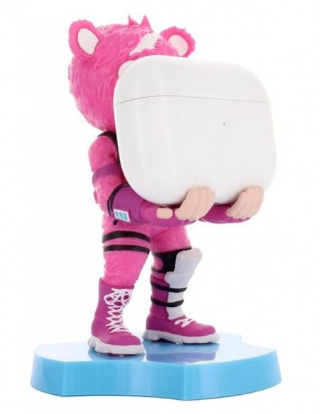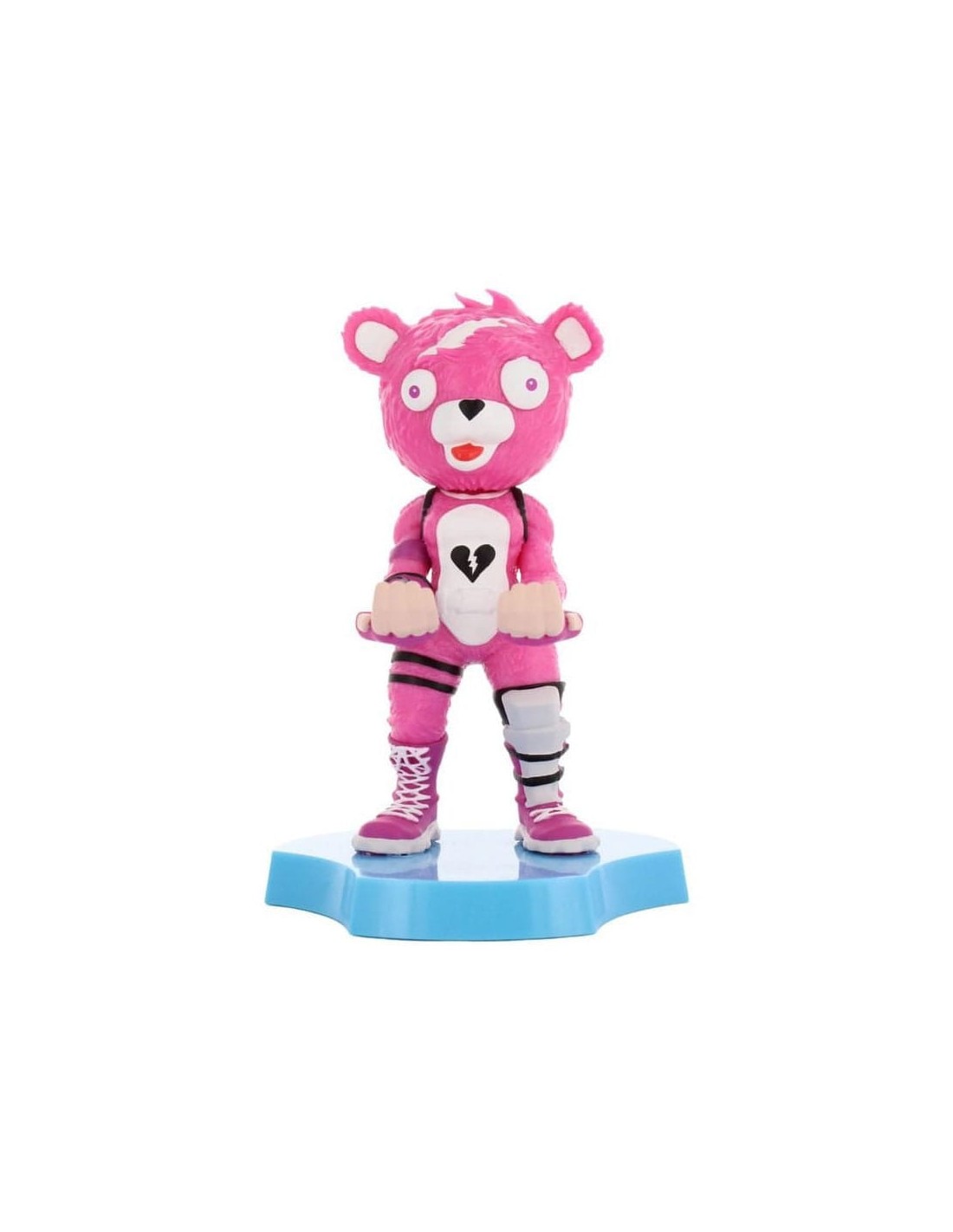 Descubre la divertida y funcional figura Cuddle Team Leader de Fortnite, parte de la colección Holdems Cable Guys, diseñada especialmente para amantes de los videojuegos. Esta minifigura, de 12 cm de altura, presenta un vibrante color rosa y la icónica forma de un oso con un corazón roto en el pecho.