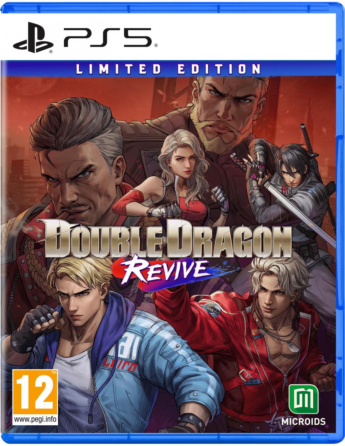 Double Dragon Revive Limited Edition para la consola PS5, gráficos de personajes renovados y elegantes en este juego de acción belt-scroll y lucha, poderosos enemigos del pasado regresan para enfrentarse a los hermanos Lee.