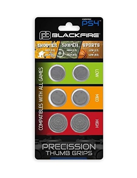 Blackfire nos trae un set de grips compatible para el joystick del mando DualShock de PS4. Faciles de poner y quitar nos proporcionan una mejor experiencia en el juego con sus 3 tipos de altura que podremos combinar a nuestro gusto.