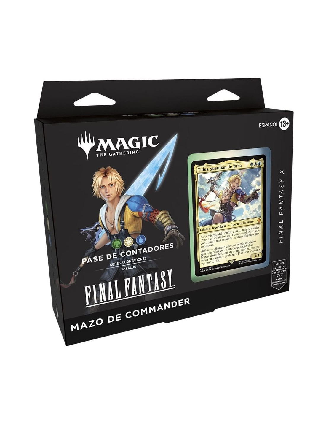 Las olas de Spira chocan contra el multiverso de Magic en un mazo diseñado para los que juegan con astucia, velocidad y trabajo en equipo. Inspirado en FINAL FANTASY X, Pase de Contadores está liderado por Tidus, Yuna?s Guardian, listo para guiar a su equipo con habilidad y determinación.