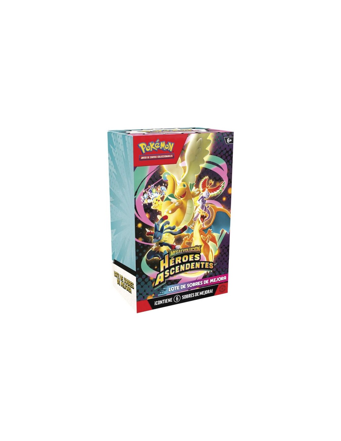 - Contiene 6 sobres de mejora de Megaevolución-Héroes Ascendentes de JCC Pokémon. (Cada sobre de mejora contiene 10 cartas, 1 Energía Básica y 1 carta con código para JCC Pokémon Live. Las cartas varían en función del sobre).