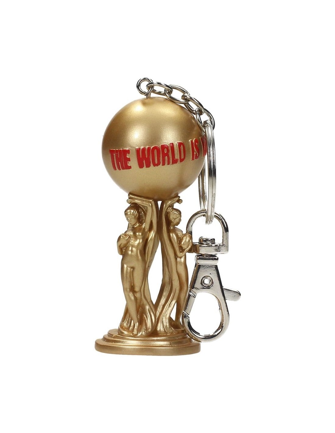Inspirado en la icónica escultura a la entrada de la mansión de Tony Montana, que forma parte de la legendaria escena final de la película Scarface, este llavero es un tesoro imprescindible para todo fan del cine clásico de gánsteres.